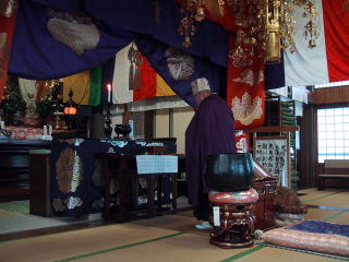 ![]() 一人一人名前を読み上げる和尚様 |