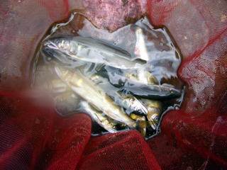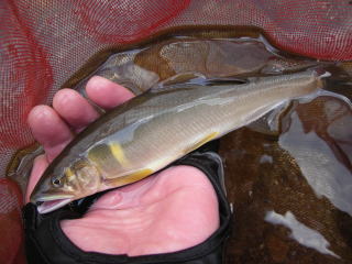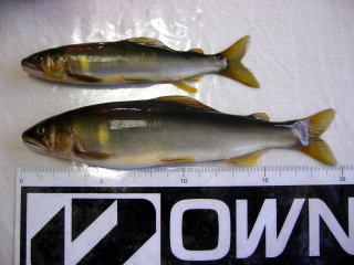 待ちに待った2007鮎解禁\(=⌒◇⌒=)/ どうも、ご無沙汰しております。 伝説の鮎師こてつでございます。 皆さんどうでした?解禁は? 噂では紀伊半島はズタズタらしっくって・・・・ 僕のホームの宮川も解禁直前に悪くなっちゃってヽ(;´Д`)ノ、 それでも、短い夏は始まりました。 今年も目一杯楽しみましょう(^o^)/~~~ で、今年も準備万端で僕の解禁日に挑んだ訳です。 見てください!この気合の入った仕掛け達をだ(*`Д´)ノ" ![]() これ全部頂き物です^^; いつまで経っても、仕掛け切ってばかりいる僕に お世話をしてくれる仕掛けコーディネーターさんがプレゼントしてくれました。 昨年までは、「仕掛け名人Mr.岡村」氏を僕専属の仕掛け職人としてたのですが (この男、解禁で78匹釣ったウツケ者です) 今年は、「ハルちゃんの鮎ナビ」のハルさんからも頂き 果ては、大阪の鬼山さん(オニヤンマともいうらしい)が切れない仕掛けを持ってきてくれました(爆 皆さんどうもありがとうございました。 これで今年は何もせず川原に立つ事が出来ましたε=(>ε<) プッー! ちなみに ![]() この様に、きめ細かい注意書きを付けて頂けると こてつ伝説にも拍車が掛かろうかと思われます。 タダでもらってるにもかかわらず 「30尾はOKです」 と、敬語で書かれると、 どっちがどっちの立場なんだ(゜Д゜≡゜Д゜)? と錯覚を起こし、思わず「使って差し上げよう」と言いそうになってしまいます(笑 こんな事情で、やむを得ず何もせず解禁を迎えた訳ですが これでは鮎の神様に申し訳がございません。 そこで、今年はこてつ的努力目標として 全釣行車中泊宣言 を打ち立てた次第でございます。 この壮大な計画を実行するまでの経緯はコチラをご覧くださいませm(_ _)m ご存知、僕のテリトリーは宮川&大内山川です。 車で10~30分で全エリアをカバー出来ます。 しかしだ!こういった恵まれた環境にあるからこそ 何処か鮎に対して甘さが出るのではなかろうか? もっと自分を追い込まねば、宮川のほとりに「伝説の鮎師@こてつ君銅像」は建たないぞ!! どこまでも自分に厳しいこてつです ![]() ご家族の、こういった御意見は却下させて頂きました(*´∀`)ノ 友釣りの仕掛けは何も準備せず、車中泊の準備に余念のなかったココ1週間。 寝袋の下には何か敷かねば痛いやろか? 朝起きたら歯磨きせないかんな! ところで、ガスボンベは何回使ったら終わるんやろ? カップラーメンより袋入りの方がゴミ少なくてエコロジーって感じ? こんな事色々考えてるだけで 楽しすぎq(°o°)pポワァ~~~ン てな訳で、5日の仕事終了次第、愛車を駆って闇夜へと消えていったこてつ。 コンビニで買出し前にパチンコで資金調達してたのは言うまでも無かろう。 真っ暗な車中、一人ぼっちのこてつ・・・・ かなり寂しいかと思いきや、妙にウキウキ感が心を支配してました^^ ![]() こんな風に1人チビチビやる酒盛り^^ やっぱアウトドアやのぉ~~~最高~(≧∇≦) って、最初はテンション高かったのですが ラジオ聞いたり、荷物動かしたりしてたらやる事なくなっちゃってさ もう退屈で退屈でヽ(;´Д`)ノ、 嫁からの生存確認メールを機に寝ました(爆 しかも朝まで爆睡m(_ _)m.。o ○ 車で寝ると疲れが残るかと思いきや 家で寝るより快眠なんですね^^ ( ゜Д゜)ハッ かなり前置きが長くなってしまいましたね^^;(毎回ですか?) さぁ!!行って来ました「宮川上流」 「まじっすか?(・∀・;)・・・・・」 って声が聞こえてきそうですね。 ご存知の通り、冷水病がかなり出てる、壊滅とも噂される宮川上流。 でもね、ココは僕の愛する宮川なんです。 解禁は何があっても宮川なんですよ!! 今年も、お世話になります「宮川インフォ」さんで情報収集です。 冷水病は出てるものの釣果もある程度は見込める状況との事。 意外にも、鮎師達が結構来てるんです。 話してる間にも、それらしき車が数台通過していきまいした。 漁協下・びわがけ・大隈・荒瀬と先行者有り! 得意の地蔵がまだ空いてたので地蔵に入りました。 やはり川にはチラホラ鮎仏様が見えますが 元気に泳ぐ鮎も確認できました! はやる気持ちを抑え、もらった仕掛けをセットするこてつ ピャララ~~~♪ピャピャピャピャピャ・ピャララ~~~♪ ![]() 昨夜はありがとう!勇次(爆 本日はわざわざ大阪から仕掛け持ってきてくれた鬼山さんに敬意を表し 何か、赤い糸の仕掛けを使わせて頂きました。 天上糸から鼻環までズルッとセットになってて しかも計ったかの様に僕の竿にジャストフィット!! この仕掛けに、仕掛け名人Mr.岡村氏の作った小針をセット。 ↑ コレだけが今年僕がした事です^^; 最初は囮を野鮎に交換するのが鉄則。 養殖でも泳ぎやすい緩い流れを下から上げていきます。 ![]() 農業用放水をしているので水量は申し分ない状態ですが ハミ痕があまり見当たらず、川の色もイマイチなのですが 時折、鮎が走るのが見えます。跳ねる鮎も居ます。 プカプカ流れてくる鮎も^^; それでも、10分ほどで1匹目が来ました。 今思えば、緊張もせずサク