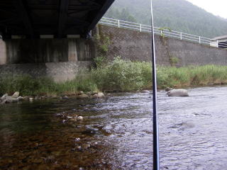 橋の下で竿出して程なく、橋の上から声を掛けられました。