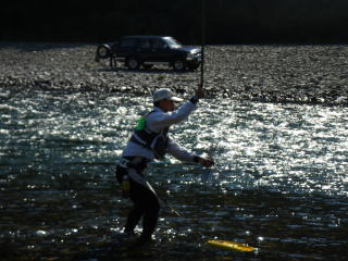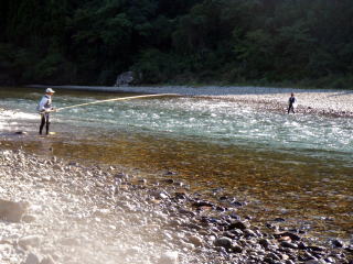 そろそろ一般の鮎師さんは次々と納竿をされる時期・・・ そして今日、我が「好条件戦隊こてレンジャー@ピンク」も納竿の儀を執り行う事となった。 もちろん私、リーダー@レッドのこてつとしては来賓として参加せねばならないm(_ _)m お菓子&ビール&お酒をドッサリ積み込んでいざ出立だぁぁい(*´∀`)ノ ハイ・・・この時点で既に秋の遠足となってます(汗 公私共にお世話になったピンク(*v.v)。 感謝の意味も込めて、愛車ZERO号(仮名)の運転はレッド自ら買って出た! そしてピンクは後部座席のビップ待遇!! 助手席には@ブラック隊員が鎮座した。 そう、今日は「好条件戦隊こてレンジャー」 幹部揃っての出陣となりました。 (どうでもいいかな^^;?) 通常、リーダーの私が作戦を指示するのですが 今日はピンクに全権を託し、好きな場所で気の済むまで楽しんで頂きましょうヽ(゜▽、゜)ノ 来年まで熊野とお別れのピンク。 「さぎり」でしっかり記念撮影^^ そして、いつもの叔母ちゃんとこで囮購入。 向かった先は熊野川(鬼汗 地形が分かる人には理解できますが さぎり経由で熊野水系に入ったら北山川での釣りが常人のする事。 やはり一味違います・・・ピンク・・・・ そして、道の駅の近くのポイントを偵察するものの 増水&色ダメって事で、北山にまた引き返す事になりました。 とことん場所選びにはこだわります。 ![]() 「花井」ってとこです。 ここもブルで掻かれて真っ白け。 私はいつもの様に、車を停めた所から釣り開始。 ピンクは瀬の頭に、ブラックはいつもの様に見えなくなるまで下流に旅立ちました。 竿の先がゴゴッ!と引き込まれる当たりはありましたが水中バレ。 あとはいつもの様に坊主ハゼ数匹(笑 サクッと場所移動です。 ![]() 「百夜月」ってとこです。 ここでも、私は車を停めた前から、ピンクは上流へ ブラックはまた見えなくなるまで下流へと旅立って行きました。 入れるや否や、1匹ゲット^^ 18センチ程の囮頃? プ~~ンと鮎の香りが鼻をくすぐります。 ソレを囮に入れると即当たり。 が、あっけなくメタル途中からフッと切れて放流ヽ(;´Д`)ノ、 囮2号を発進させますが、坊主ハゼ数匹(涙 ピンクもパットせず早々に竿を仕舞ってしまいました。 もう、囮がヤバイ状況です。 ここで違う場所で釣っていた、Fアサヒのセコさんが合流。 しかも数匹の天然所持(嬉嬉! その上、来るなりココでサクッと天然ゲット! ![]() とても丁寧な釣りをするこの男。 好条件戦隊こてレンジャー@めろん♪任命!(*`Д´)ノ" いや、物凄い釣り経歴の持ち主らしいのですが そんな事気にする様な、小さな人間ではございません。私。 私の為に囮を確保してくれる優秀な人材は全て手に入れるのですヽ(゜▽、゜)ノワァ~~イ 頼むよ!@めろん♪隊員!! 来週も熊野だって?よろしくね(^^ゞ さて、悶々とした釣果の中、@めろん♪隊員の参加で活気付くこてレンジャーヽ(`д´;)/ ![]() 最後の決戦は「湯の口」 ピンクとめろん♪が瀬を挟んで竿で突き合い(*v.v)。エッチ・・ ![]() はるか下流(写真右中央)まで行ってしまった@ブラック隊員(見える?) ちなみに左はピンク。 ![]() ココでようやくウキっと出来たピンク^^ どうにかこうにか納竿が出来たかな? ![]() ここでもサクッと@めろん♪隊員ヽ(`д´;)/ 今後の活躍から目が離せないぞ!! そして、本日のピンク納竿の儀の来賓、リーダーレッド@こてつくん。 きっちり坊主_| ̄|○ でも、な~~も悔しくないも~~んだε=(>ε<) プッー! リーダーのフィナーレに向け、最高の舞台がセットされったってもんです。 そろそろ、終わりかな・・・・ |