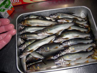 とうとう鮎の友釣りの季節がやってまいりましたヽ(`д´;)/ 皆さんも全国各河川で頑張ってますか? どうも、ご無沙汰しておりました。 伝説の鮎師@こてつ劇場2008が今年も開幕いたしました。 11月位まで、末永くお付き合い下さいm(_ _)m 釣行記に入る前に(また長い前置きです) 私が2008年の友釣り開始を迎える準備は 既に昨シーズンが終わった瞬間から始まっているのです。 昨年11月には、私専属の仕掛け職人「鬼山氏」から 解禁用のテスター仕掛けが奈良県から届けられました。 もちろん、地元仕掛け職人「Mr.岡村氏」からも針に至るまで届けられてます。 そして、今年は仕掛けだけでは伝説の序章に過ぎないと思ったのか 「車中泊支援グッズ」なる物も「トーナメンターHIDE氏」から届いたのだヽ(`д´;)/ やはり、今年もやります「車中泊」(笑 ホントはね、前置きだけで1年分の釣行記位のネタは用意していたのですが 長い2008鮎ロードです。小出しにしていきます(爆 さて、既にご存知かとは思いますが 今年は凄い事になってます。 宮川上流大爆発中ε=(>ε<) プッー! しかも、確率変動突入だヽ(`д´;)/ 解禁日に三桁釣った情報も5名! 中には160匹釣った方もいらっしゃいました。 その爆発力が未だ持続中だとか・・・ そんな情報を聞きつけ、今回は京都から鮎味亭の近ちゃんが攻撃しに来るとか。 しかも、この私にナビをお願いされたとか・・・・ な・・・何考えてますのΣ( ̄□ ̄;) ちなみに、近ちゃんって方。 本物の激流隊で各トーナメントでは上位入賞は必至。 私の周りで全国に1番近い男として位置付けしております。 まぁ、場所案内くらいなら出来るかな^^; 「ココが荒瀬で、ココ地蔵ね。そんでココがね・・・・」 こういった場所案内を求めてるのでは無い気もします。 要は、何処で良い鮎が沢山釣れるか否や!!って事ですよね。ナビって{{(>_<)}} 運よく、宮川の好調のお陰で、本日も本物の地元激流隊員も数名来てくれるので ナビはそちらにお任せして、とりあえず私の出来る事は 目立つ所にジェニーちゃんを停めておく これだけかなぁ~~( ▽|||) そんな格別の思いを胸に秘め、今年初の車中泊!! 近ちゃんが何時に来るか分からないので 宮川上流に行くには絶対に通る橋の所に停車し HIDE君からの車中泊支援グッズを開封。 DVDプレーヤー&謎のDVD数十本 近ちゃんが何時に通過するのか分からないし DVD見るの忙しいしで、ホボ徹夜で夜を明かしてしまいました。 DVDの内容は、激流鮎師には必要不可欠 竿をオッ立てろ(*v.v)。 的な内容。洋物&和物盛りだくさん(笑 しっかり特訓させて頂きましたヽ(`д´;)/ いつまでも、DVD見てる訳にもいきませんので 鮎師さんの車が2台通過したところで 宮川上流の私の情報源「宮川インフォ」さん所に行って年始のご挨拶(^o^)/~~~ もちろん、遊魚券&囮も販売していますよ^^ 宮川インフォさんからね 「沢山釣れるから、大き目のクーラー持ってきてね♪」 って言われてたからさ、 ほら、コレ見て^^ ![]() こ~~んな大きなクーラー買っちゃった(爆 200匹位は入るかなぁ~~~ 今日はコレに満タンの鮎が入る予定^^ そんな馬鹿話に花を咲かせてる所へHIDE君登場(早ッ! でもコレで近ちゃんが何時来てもナビは一安心(・∀・;)・・・・・ 車中泊支援グッズの感想を述べ 追加DVDをあと16本してもらう約束をし、いざ釣り場へレッツゴーヽ(`д´;)/ このHIDE君も、雲の上の鮎師さんです。 私はとりあえず今日が竿だし初日。 HIDE君が私の技を見学する状況での竿出しです。 「こてっちゃん、立つ位置おかしいわ(*´∀`)ノ」 「こてっちゃん、目印はソコではあかんわ(*´∀`)ノ」 「こてっちゃん、ココ泳がせてみな(*´∀`)ノ」 後ろで色々アドバイスを受けながらの釣り開始でした。 やはり私の釣りは独特のスタイルだったみたいですね(涙 確かに、私の立つ位置は「立ちたかった所」 目印は、仕掛け職人さんが付けてあった所から動かしません。 つ~か、目印なんぞあまり見てませんし・・・ 良い勉強をさせて頂きました。 そうこうしてるうちに、近ちゃんも到着し ハイレベルの鮎師2名の見学する中竿を出す私・・・ チョビッと緊張ヽ(゜▽、゜)ノ その緊張の中、今年の1匹目が掛かった!! とにかく取り込みは、誰もが認める腕前を持つこてつです。 「ほら見て!掛かったで!取り込み何処が面白いか見ててヽ(^O^)ノ」 運よく、普通にタモに収まった18センチ程の鮎。 はしゃぐ私を尻目にサクサク釣りの準備に取り掛かる御二人。 おや?鮎見たらもう私には興味が無くなったのでしょうか(涙 正に鮎馬鹿の方々ですね^^; そして、銘々思い思いの場所で釣り開始となりました。 時間と共に増えてくる鮎師。 機も熟した頃に、こてレンジャーピンクも登場!! では、ココで状況をば見て頂きましょう。 この3枚の写真を良く見てください (写真は勝手にピンクの所から流用です) ![]() ![]() 激流隊@レンジャー谷 激流隊@近ちゃん ![]() なんちゃって激流隊@こてつ 別に今年買った服を自慢してる訳ではございません(笑 入ってる所の水流を
