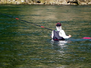 お盆の2週間連続営業も無事乗り切りホット一息と言うより 溜まりに溜まった鬱憤(ウップン)を何処かに吐き出さねば 何か大きな犯罪を犯しそうな心境だった こてつ42歳、狂おしい夏{{(>_<)}} こんな時は、やはり一人で車中泊(爆 愛車ZERO号(仮名)のアクセルを踏み込んでぶっ飛ばす七里ヶ浜。 あっという間に、囮や屋さん前の道の駅に到着。 あのね、デジカメで色々写真撮ったんだけど無いのよ!デジカメがヽ(;´Д`)ノ、 ココでドッカ~~ンって車中一人宴会の写真が入るはずだったんだけどさ 無いのよ!デジカメが_| ̄|○ 深夜ラジオを聴きながら、呑んだビール5本。日本酒2合。 トイレの近くに駐車してるもんだから、暗くてもトイレ行くのが恐くない(笑 何時まで呑んだのだろうか・・・・ 知らぬ間に眠っていたいた私を起こした一本のメール。 仕事で通販もやってますので、受注メールが携帯に転送されてきます。 しかし、朝の4時に中華そば注文するってもの中々ナイスな生活ですね^^; またウトウトしたと思ったら5時半頃に電話が鳴った。 何でしょうか?この非常識なお電話は(゜Д゜≡゜Д゜)? 「おはよう(*´∀`)ノデヘヘェ~」 「あ!おはようございますヽ(`д´;)/」 誰だか分からないけど、社会的に礼儀だけはわきまえる男です。私。 「起きたぁ~~ヽ(゜▽、゜)ノ?」 何なんでしょうか?この方? モーニングコールしといて「起きた?」は無いでしょ?普通! この場合 「起こしちゃった?ゴメンね^^;」 が、社会的に模範解答とされてます。 この御仁の正体は、熊野の仙人@夏は川漁師さんだった。 一応年上の方ですので、どんな時でも敬意を払う礼儀正しいこてつ君。 「どうしたんですか?今何処に居るんですか(゜Д゜≡゜Д゜)?」 「まぁ外の東屋見てご覧(´▽`)デヘヘェ~~」 注:ここまで書いて眠ってしまいましたzzz 一夜明けてっと(*´∀`)ノ よ~~く探したら出てきました。デジカメ^^ ほんじゃぁ、最初からね(笑 愛車ZERO号の後部座席にはこんな仕掛けがあったんですよ。 ![]() 何かテーブルみたいなの飛び出すんです。肘置きの中からヽ(`д´;)/ ソコにはドリンクホルダーなんかも出てきてもう最高の車中居酒屋状態! そんな理由で呑みすぎて、寝ぼけた状態でのモーニングコールだった訳です。 そんでもって川漁師さんと一緒に早すぎる朝食をとり 折角ですので、川漁師ポイントに案内してもらう事になったんです。 ![]() 着いた時は貸切でした。ココ。 私は、この瀬とその駆け上がりで竿を出す事にして 川漁師さんは、もう少し上流まで車で移動されていきました。 鮎がアチコチで跳ねてます。 いっぱい鮎が見えてます。 こりゃぁ~~爆釣してしまうでε=(>ε<) プッー! ユルメの流れで囮を取り、写真の瀬を引こうと考え 岡村工房の最新作品@メタル0.125をセット。 カリカリカリって音がする仕掛け巻きです。 カリカリカリ~~~プツッ・・・・・・ いきなり使わずして仕掛けを切ってしまいました(涙 後で聞いたら、四角い箱から丸いの出して使わないと 引っかかってこういう状況になるんだって(・∀・;)・・・・・面目ない・・・・ でも大丈夫^^ ちゃんと予備も作ってくれるのが岡村工房のサービス♪ 何とか無事、仕掛けをセットして釣り開始だい(*`Д´)ノ" 見た目より、やはり押しがキツイです。 浅いかと思って入ったら、いきなり深かったです。 何故か囮が中々流れに馴染んでくれません。 チッチャイ鉛装着&引きます。 程なく当たりがあり、取り込むと腹に掛かって出血大サービス_| ̄|○ 囮を2号機に交換して引くと、かすかな当たり。 今度は人差し指程のビリ鮎・・・ 何かヤバくない(゜Д゜≡゜Д゜)? 一人ぼっちの熊野川。頼れるのは自分だけ。 自分の何を頼れば良いのだろうかヽ(;´Д`)ノ、 運 そう、私は今まで何度も窮地に陥ったときは「運」で切り抜けてきた。 意を決し、フラフラ養殖1号に大きなオモリを装着し瀬を引きます。 ダメだ・・・浮いてしまう{{(>_<)}} さらにもう一つ、オモリを追加。 何とか囮は沈んだ・・・・が程なく根掛かり。回収不可能。 アレコレやった挙句、仕掛けを切ってしまいました。 だってね、岡村工房社長がね 「竿折れるから仕掛けを切る様に。ナンボでも作ります(*`Д´)ノ"」 ってメールしてくれてたの。 切ったはいいけど、残るは養殖2号機と切腹君とビリ。 かなりヤバくない(゜Д゜≡゜Д゜)? 養殖2号機にまたオモリ装着し、瀬を引きます。 願いも虚しく、また根掛かりガ━━(;゜Д゜)━━ン!!・・・・ コレを切ってしまう訳にはいきません。もう後が無いのです。 こてつ君、必死に回収作業に取り組みます。 引き舟、タモを外し、瀬の中に果敢に挑むこてつ君。 流出(大慌て!) 案の定、流れに負けてこけてしまい流れるこてつ君。ピ~~ンチ! が、竿だけは高々と差し上げてる自分に気が付いた時、仕掛けが切れた_| ̄|○ トボトボと、車に戻るこてつ君。 まだ1時間少々しか時間が経ってない。 引き舟には、切腹君とビリ鮎君の2匹。 養殖を天然に換えたと思えば気も楽になる・・・・はずがないヽ(;