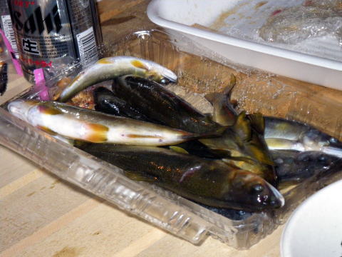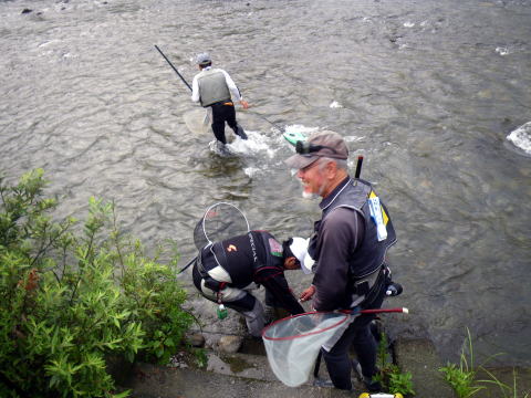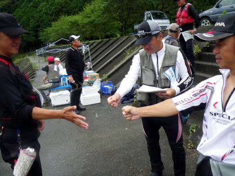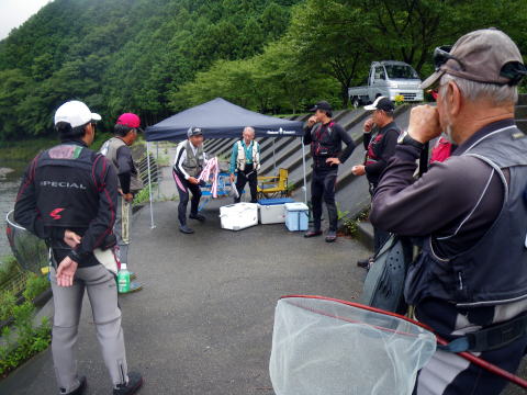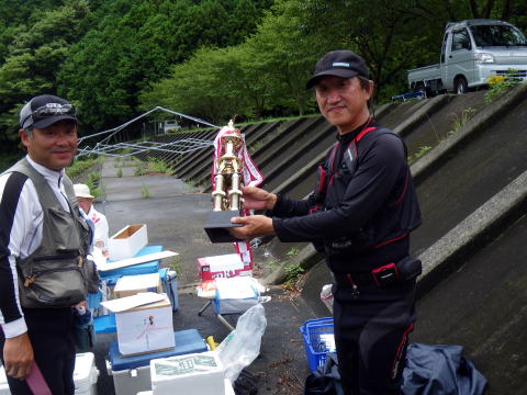 さぁ~~今週は私が年に1回だけ 人と鮎バトルを繰り広げる 第23回七鮎会世界大友釣り大会! まぁ、地元の会の大会な訳です≧(´▽`)≦ 20代~80代。 幅広い年齢層で和気藹々と 鮎の友釣りを通して交流を深めます。 その中に、地元では一目置かれる名人が居まして この方に勝つか引けをとらない成績を修めるのが 私の目標でもあります。 もちろん優勝は意識してますけど(爆 さて、話は変わって(何で?) 先週のアレ ![]() 「ぱたの釣り日記」のぱたさん情報で どうやら格安で修理が出きる工房があるとの事。 こちらの工房です。 「竿・ロッド修理・改造のチャンス」 族仕様に車改造するのとノリは似てますね。 三重県内にも取次店はあるのですが 持ち込む時間もママならぬ我が暮らし_| ̄|○ 直で送っても良いとの記載があったので 塩ビパイプに入れて送るつもりでいました。 っと、そこへhide君から 「大内山帰りに寄って竿アサヒに持っていこか(^o^)/~~~」 そう。 三重県内・・・いや三重・愛知・静岡県内では フィッシング遊全店でチャンスの取次ぎを行っているのだ。 (ちなみにチャンスの取次店一覧はコチラです) 「ありがとう。でも取りに行く時間も無いのε=(>ε<) プッー!」 みたいな(爆 すると 「ほんなもん、お届けしますがな(*´∀`)ノ」 仏様発見ヽ(゜▽、゜)ノ ありがとう!hideくん♪ てな次第で、只今破損箇所は入院中。 追って出来具合なんぞもUPしますね。 さて、話は変わって(またですw) 今週はシガノン隊員も宮川に泊まり込み遠征に来てたりしました。 って事はですよ 優勝前祝会開催 ( *~□ゞぐびぐびっ クリア隊員(元仕掛け工房)夫妻と共に 酒を酌み交わし士気を上げます(*`Д´)ノ" 明日の為の仕掛け一式、そして針。 全て段取りして頂きました≧(´▽`)≦ しかもですよ 針は針ケースに収納までしてもらっちゃって。 ピンセット使って1本1本丁寧に収納してくれてるんですよ(驚! ちなみに私がすると フタからハリスがヒゲみたいにいっぱい飛び出してます(* ̄Oノ ̄*) さぁ~~準備は整ったぞε=ε=ε= ヾ(*~▽~)ノ (整えてもらったともいいます) さて、ようやく七鮎会友釣り大会です(笑 ![]() ほぼ平水の大内山川岩船橋下流です。 ざっと川を見て思ったのが どうも色が悪いというか垢が付いてない気が・・・・ そんな事を思いながら川を眺めていると hideくんから応援電話だヽ(`д´;)/ 「最後まで諦めず粘る事!」 明らかに大釣りが出来る状況ではありません。 根気よく諦めない。 そんな事出きるやろか。(´д`lll) っと同時に 関西激流隊南三重一番隊長ナンちゃんが G杯制覇の吉報も届いた! なんだかお目出度いぞヽ(゜▽、゜)ノ 規模は小さくても1番は一人だけ! いっちょ頑張るぞ!! ![]() 正面中央が最長老です。 傾き加減がかなり危うくなってきましたので今年で引退です。 そして右手前の爺さんが今日のターゲット(爆 くじは4番。 可も無く不可も無く。 ![]() ターゲットは3番。 順次入川し、正午までの戦いが始まりましたヽ(`д´;)/ 川の色悪いやろ・・・・ いきなりですが結果の発表です(爆 1匹差で 優勝を逃しました。(´д`lll) さて、その結果を念頭に試合を振り返って見ます。 私の取った作戦は 最下流部の淵への流れ込みに陣取り 淵から上がってくる鮎を狙う。 調子よければそのまま居座る。 悪ければ1匹目の囮だけ使って場所移動。 もう1匹の囮は次の勝負まで温存。 最下流部の淵には大きな群れ鮎が湧いてます。 その鮎の中から必ず刺してくるのが居ます。 でもこの日は居ませんでした(爆 私一人で下の瀬を釣ってたのですが 何をしても反応が出ませんでした。 囮を1匹使った(休ませたら復活する程度)所で 左岸の柳の根が誰もやってなかったので そこに移動しました。 ここは30センチ位の水深のトロ場。 囮が自力で昇って行く時なら掛る事が多いです。 囮2号発進(*`Д´)ノ" あれ?どうしたの? ![]() 何か囮が内出血してました。(´д`lll) とりあえず鼻環通して放すものの その場で横たわる2号機_| ̄|○ お・・・終わった └(´д`;;)へ=зムギュ~~ 先ほど果敢に使った1号機が手元にあるのみ。 このトロ場では泳ぎそうにない。 1号機に休息時間を与えると共に 最上流部の瀬まで移動です。 色々皆さんに釣果を聞きながら移動しましたが 最高が3匹とやはり低調。 一等地の三点岩に陣取ったゆうきくんも3匹。 この時点で彼は優勝をかなり意識し始めたでしょうね。 そんな彼を通り越し ![]() ここに沈めて飛び付きを狙いますが空振り_| ̄|○ 囮の生命反応からも いよいよ最後の勝負に出なくてはいけない兆しが(汗 ![]() 引いて引いて引き倒せ キタ━━━━(゜∀゜)━━━━!!!!!! しかしノーヒットΣ( ̄□ ̄;) 1匹の囮でここまで頑張ったからOKか? とも思いましたが、まだ時々エラは動いてます(笑 鼻直上に1個、20センチ離してもう1個。 2個のオモリを付けて泡の後ろで止めて奇跡を待ちます。 時刻は11:00(爆 よくぞここまで辛抱したぞ!俺!! 「坊主では笑い話にならんぞ!」 その思いだけが私を支えてました。 ついに見事な背掛りで22センチ