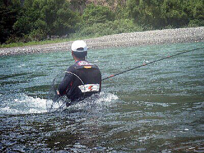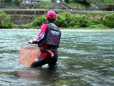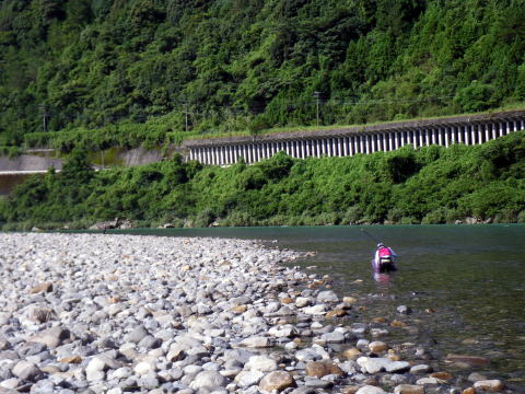 通常ココは瀬の上のだだっ広いトロを立ち込んで釣るのですが