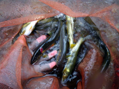 以前修理に出していた骨折した3番 先日手元に戻ってきました。 今回お世話になったのは「チャンス」って 何か良いことの起こりそうなお店なのですが その取次店はフィッシング遊各店舗。 ちなみに松阪店が一番近いのですが 仕事と遊びの関係で営業時間内に自分で持ち込みは不可能。 そんな不可能を可能にしてくれたのは 私の釣りコーチ陣の一人@hideくんだった。 家まで竿持ちに来てくれて持ってってくれて 治ったら家まで持ってきてくれました!! ありがとう!hide君ヽ(゜▽、゜)ノ んでコレがその出来栄えです ![]() ビフォアー&アフターですが 見た目全く折れたとは判らない出来栄えです\(◎o◎)/! 中を覗いてみましたが やっぱり何もわかりません(笑 強度の方は使ってみないと分かりませんが この出来栄えだと問題ないかなと思いました。 あ・・・@おまけ君が竿折ったんで(6番) チャンスで直すとか言ってました。 こちらもその後を追跡していきます(爆 さて、 そろそろ納竿の声も聞こえてきた今日この頃。 我が戦隊の@シガノン隊員も 早くも21日アオリイカに転向釣行との連絡があった((o(-゛-;) たるんどる(*`Д´)ノ" しかし 「レッド隊長が宮川行くなら、22日お供します♪」 とのメールが来た(爆 彼は21日はアオリイカ、22日は鮎釣りの豪遊なのだ≧(´▽`)≦ 今年はあまり行かなかった我が故郷「宮川」 久しぶりに会う大原囮店のmiyamiyaさん。 今年もお世話になりました(*´∀`)ノ 宮川@好条件CUPも 宮川インフォさんの力なくしては出来ない行事になってます。 (あとブラックとおまけくんもね) ![]() 好条件CUP2010も 何かおもしろかったなぁ~~~ε=(>ε<) プッー! 来年あったら、君達もおいで。 ブラックとおまけ君が待ってるよ(≧∇≦) おっと、この「宮川」なんですけどね また清流日本一に選ばれたんですよ。 この綺麗な宮川をいつまでも残していきたいですね。 今日やって来たのは ![]() 「かまのくち」 今年、かなり宮川に通ったシガノン隊員のお気に入り♪ お手並み拝見といきましょうか( ̄ー ̄)ニヤリ ![]() 状況は可もなく不可も無く。 この時期相応の状態。 シガノン隊員が釣り始めたのを確認し 私は上流へと旅に出ました。 ![]() すぐにこの目印に到着です_| ̄|○ この黄線で友釣り専用区と引っ掛けが分かれています。 「こんなギリギリまで引っ掛けに来る エグイ事するモンはおらんやろ(・∀・;)・・・・・」 結構穴場になってたりしません? 友釣りで言う所の「竿抜け」みたいな(笑 ![]() 水深太もも。チャッピチャピです。 何だかんだ言っても 「元祖チャピチャピの王子様」なんです。私(*v.v)。 しかも久しぶりにこんな釣りをしますので とっても新鮮な感じがして集中できました。 1時間だけ(爆 透明な水中でギラっと光り絡み合う鮎。 出し掛かりで4発来て沈黙。 鮎も20センチ前後で揃ってます。 ![]() こんな小さな溜まりもマメに竿刺しました。 ![]() まだ群が数個あって どこからかやってきて此処かへ消えていきました(笑 最後まで「小砂利の群れ鮎攻略」がテーマでした。 シガノン隊員もポツポツ掛けてました。 ![]() 辛抱強い釣りをする人です。 昨日6時まで筏に乗ってイカ釣ってたとは思えない根気です(爆 昼までに7つだったかな。 午後の部もそのままココで。 ![]() すっかり宮川を攻略したシガノン隊員。 来年の好条件CUPでは活躍してくれることでしょう≧(´▽`)≦ 釣った鮎♂が弱る(変色)のが早くなってきてます。 メスは抱卵も始まってきてました。 囮の管理にチョット気を抜いて 浅い場所に船置いてたら案の定腹パンパンにして浮いてました♂(笑 放流したらトンビが突進してきて 下流に居た人がビックリしてました( ̄▽+ ̄*) 3時に終了。 ![]() シガノン隊員13匹。 私はツ抜けした程度ですけど(・∀・;)・・・・・ この時期の釣りです。 坊主も覚悟してたので気持ちよく納めてきましたヽ(゜▽、゜)ノ まだまだイケます。宮川上流。 あのね最後に大釣りしたい人居る? 「いたどり」付近行っておいで(* ̄Oノ ̄*) カンフル剤注入してあるから(≧∇≦) 早い者勝ちでっせ! 30はイケまっせ(*`Д´)ノ" 最後の最後まで安定してました。宮川上流。 シャクリでは30センチも出ました。宮川上流。 専用区を1箇所につなげた効果はどうだったんでしょう? 私は友釣りには大正解だったと思ってます。 年々、少しずつ渓相を取り戻しつつある宮川。 来年もきっと楽しませてくれることでしょう。 こんな感じで 地元河川「宮川上流」の納めをしてきました。 次週予告 はっきり言えやんわ( ̄ー ̄)ニヤリ |