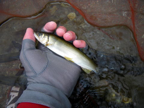 何か豪雨で各地で大変な事になってますね。 ちょっと離れてるだけで三重県内でもお天気が全く違います。 ココ宮川上流域ではそんな大した雨も無く 普通に釣りが出来る状況。 そんな状況に感謝して 行って来ました「宮川上流」 チョッと朝寝坊して辿り着いた宮川インフォさん。 今年は恐ろしいほど安定した釣果の宮川上流。 爆釣出来るでもなくドハマリするでもなく 普通に釣ってれば何とか1日楽しめる川。 ★20匹前後★ コレが今年の宮川のアベレージ。 何とかこの数字を大きく上回る釣果を叩き出せたら 気持ちよ~~~く 天狗になれるんちゃいます?ヽ(*∩.∩*)ノ そんな熱い思いを胸に秘め グルッとポイントを周りますが 他県の河川が全滅ですので結構人が多くてね・・・・ 1台しか車が停まってなかった 「地蔵」に入って見る事にしました。 先週の好条件CUPで少しだけ竿を出したんですが 特に可もなく不可もなく(爆 ![]() とりあえず降りた所の流れ込みで様子見です。 1台しか車は無かったのですが3名の先行者有り。 思いのほか簡単に1匹目 ![]() 大きくなってきてますヽ(* ̄▽ ̄*)ノ コレを囮に芯を引くと サクッと2匹目。 ココまではいつも順調です(笑 そして沈黙タイム突入_| ̄|○ っと先行者の子が近づいてきて 「レッド隊長じゃぁないっすか?(*`Д´)ノ"」 みたいな(爆 ちなみに「こてつさんですか?」とは良く聞かれますが 「レッド隊長ですか?」とは初めてだった(*v.v)。 ココ読んでくれてる子で岐阜から来てるんだって。 3人で乗り合わせてきたらしいです。 今日は曇天で、その上、部下も連れてない状況・・・ レッド隊長に変身するのは物足りない心理状態ヽ(;´Д`)ノ、 物静かなジェントルマン@こてつ で対応しときましたε=(>ε<) プッー! どうも彼等もパットしないみたいで苦戦中。 サクサクッと探って移動する事にして チョッと上流まで行って釣り下ってきました。 今季初の親子丼1回。 5匹釣り上げた所で場所を移動しました。 宮川攻略のキーワード 砂地の群れ鮎崩しヽ(`д´;)/ そんな意味合いもこめて こんな場所に行って見ました。 ![]() 半次郎橋下流の砂浜です(笑 鮎の群れ団子が気持ち良さそうに泳いでいます。 ちなみにこんな場所は大嫌いです(・∀・;)・・・・・ いえね、よさ気な場所は何処も満員で入る場所が無くてね ウロウロしてたら見つけたの ![]() 地元の友釣りの会「七鮎会」のメンバーで ずば抜けた腕前の持ち主ヤスダ氏。 ちなみに七鮎会の大会では この男を倒す事だけを目標としてます。 そんな男を見つけた以上 その近くで竿を出すのが男道! チョッピリ本気モード突入(爆 ![]() 小砂利の川底が延々と広がっています。 アチコチで鮎が跳ねまくってます。 ニゴイも居ます(爆 ![]() 水深30~40センチ。 少し深い場所もあったりします。 ![]() 水中です。 水は綺麗ですね。 掛かる鮎は ![]() 可愛いのも混じります(笑 ![]() 釣り難い所からは良型が飛び出します。 入れ掛るでもなく、動き回って ポツポツ掛けてここで13匹。 3時で納めとしました。 5匹+13匹=18匹 正に宮川アベレージ(爆 そんな宮川。 梅雨明け用にドーピング注入済みだぁヽ(`д´;)/ はい、鮎少なくなったら ドンドン注入します(*`Д´)ノ" 今年は専用区が長ぁ~~~~い距離で残る宮川。 終盤まで安定して楽しめそうですヽ(゜▽、゜)ノ 是非お越し下さい! ちなみにヤスダ氏。 同じ場所で掛け続けてました。 何が違うのでしょうか・・・・ 今年の地元の会の大会は8月4日。 集中力高めていきます。 何せ2時間集中しかねてます・・・今年(も)_| ̄|○ |