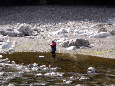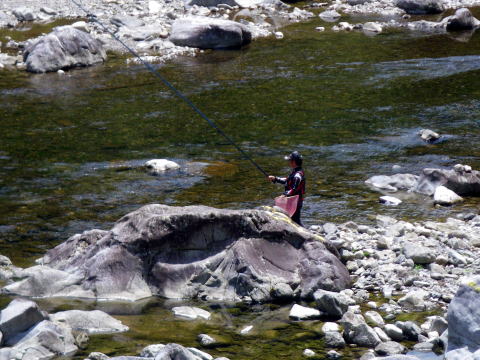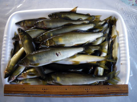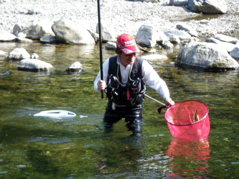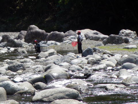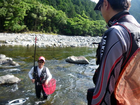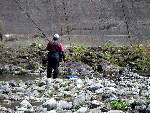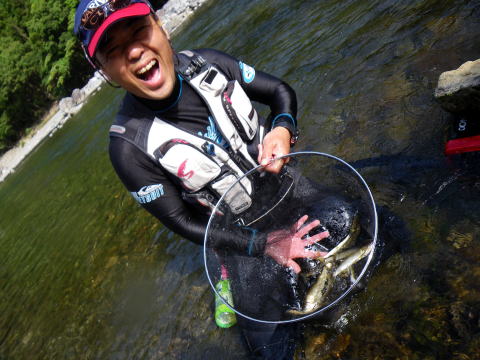 良いとか悪いとか関係無いんです。 だって宮川しか行くとこ無いんですからヽ(゜▽、゜)ノ てか、良いとも悪いとも言い難い状況の宮川上流。 そんな微妙な状況でも今週も出動する好条件戦隊こてレンジャー各位(笑 隊員の中でも@おまけ君 何故か今週は気合が入ってたらしい。 前夜にはピンク隊員から 「明日17センチの囮確保よろしく_(._.)_」 とのメールも来ていた。 今日は各隊員、ヒマが重なった日みたいだった(爆 いつもの様に宮川インフォさんで 囮購入がてら情報収集&ヨタ話(* ̄Oノ ̄*) すると 「体の大きい人も来てるで(´∀`*)」 との事。 メガトン隊員だ(爆 どうやら今日は各隊員ヒマを持て余しているバイオリズムなのか? 探すのが楽な身体特徴を持つメガトン隊員。 サクット発見(☆_☆) ![]() 頭をナデナデする信号を送ってきた所を見ると 状況は渋そうだ(~_~;) 場所は「地蔵」 良いのか悪いのか分からないけど 久しぶりに会ったのに話も出来ないのもアレですので 取り敢えずココで竿を出すことにしました。 道から見えるから後発隊にもわかりやすいしね(^J^) モタモタ準備してると早くも@おまけ隊員登場だ! 聞くところによるとかなり腕を上げたとか? 「隊長!囮持ってきませんでした(*`Д´)ノ"」 この渋い状況下で何て事をしてきているんだい? 「余分に囮買ってきました」が正しい日本語でしょヽ(;´Д`)ノ、 っと思いながらも 私の口から飛び出した言葉は 「おう!着替えてる間に 釣っといたるわい(* ̄Oノ ̄*)」 朝から河原で阿呆が二人そろいましたね(笑 いや、笑ってる場合では無いんですよね。 今から私は@おまけ君用と後からやってくるピンク隊員用の 囮を確保しなくてはいけないんですよね{{(>_<)}} ふと目をやった分流に おびただしい数の群鮎発見(☆_☆) 散らさない様に気を付けて そっと下から囮を放った。 あ・・私の仕掛けなんぞ何も興味ないでしょうけど 今年も@クリア隊員制作の完全仕掛けを使っております(*v.v)。 ハイブリッドメタマックス004号に6.5号3本イカリ装着。 メタマックスは瀬では抜群でしたがトロでの泳がせ時に 何だかパシパシ感があったのですが ハイブリッドメタマックスはしなやかでオバセも効いて良い感じ≧(´▽`)≦ 群れに馴染むや否や 心地よく飛ぶ目印(≧∇≦) それを囮にサクッと二匹目 ![]() おまけ君! 囮持ってけε=(>ε<) プッー! 何だか調子良いぞ♪ ご機嫌なこてつくん(笑 そこから当たりは遠のいたものの ピンク隊員の分も何とか囮確保。 本日の任務終了~~~(*´Д`)ハァハァ そんな時、上の道から 「隊長!私に今年は色の隊員名付けて下さい(*`Д´)ノ"」 っと叫ぶ謎の人物登場(鬼汗 ど・・・・ どちら様でございますか・・・・・ 何だか恐い。(´д`lll) 適当に愛想して放置(爆 そこへピンク隊員も合流して囮献上 ![]() 最近何故か@おまけ隊員と イチャイチャする場面の目立つピンク隊員(-""-;) 出だしの調子の良さが嘘の様に当りが遠のき 囮の循環に陰りが見え始めた頃 メガトン隊員も苦戦してるのかウロウロしてました ![]() 分流の小場にもマメに竿を差し トーナメンターの釣りを繰り広げるメガトン隊員(((( ;°Д°)))) 私も珍しくかなり上流まで偵察に行ってました。 ランチタイムにピンク隊員が車で迎えに来てくれましたけど(笑 ![]() 遅れて登場のブラック隊員。 やはり今日は皆さんヒマなのか? ランチタイムには関西激流隊のプチ杉ちゃんもいつの間にか来てた(笑 長いランチタイムも終わりに近づいた時 朝、道から「隊員名が欲しい」と叫んでた不審人物がやってきた(爆 近くで見て思い出した。 昨年の好条件CUPにも来てもらってた方だった。 ![]() 私の左後方の赤シャツさんですね。 場に居合わせた戦隊幹部から 「パパイヤ」とか「マンゴー」とか果物系の名前が出てたけど また逢えたら名前考えときますわ(* ̄Oノ ̄*) ちなみに好条件CUP。 一部マニアの熱いご要望で今年もやらせて頂きます。 詳細は追って・・・・ さて休憩だけはいつもバッチリ(笑 午後の部も同じ場所でやることに。私は少し下流部の ![]() 「天国に一番近いホース下」で竿出しです(爆 これ、放流用のホースなんです。 大きな出水もありませんので この近辺はやはり魚影は濃い気がしないでもない! (気のせいでしたけどっ) ![]() 午後からは、さっきまで海で釣りしてたナッシー船長も合流(爆 やはり皆さん今日はヒマなのか(゜Д゜≡゜Д゜)? ここは道から近いせいか 仕事中のはずのシークレット隊員、はにかみ王子と 何かだ色んな人が話しにやってきてくれた(笑 散々責められてますので 入れ掛かる事もなくジット辛抱の釣りでした。 ![]() 背中が疲れてきてます┐( ̄ヘ ̄)┌ ポツポツと追加して ウダウダッと終了~~~~ 著しい成長を遂げてきてる@おまけ隊員 ![]() 好釣果にご満悦だヽ(゜▽、゜)ノ ![]() いつも安定感のあるピンク隊員、流石ですね。 そんなピンク隊員に対しても ![]() 上から目線で容赦なく言葉攻めを食らわすレッド隊長((o(-゛-;) とりあえず全員ツ抜けは達成 ![]() 型も3分の1は18~19センチと良型。 まだ