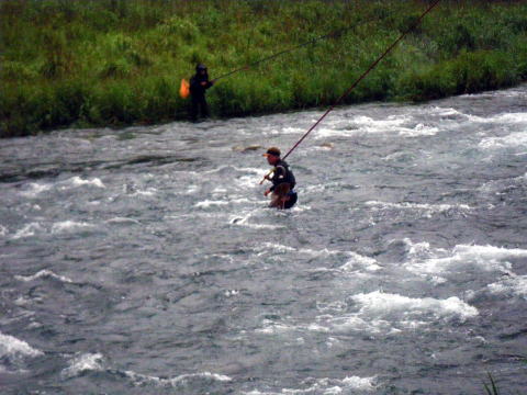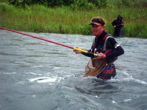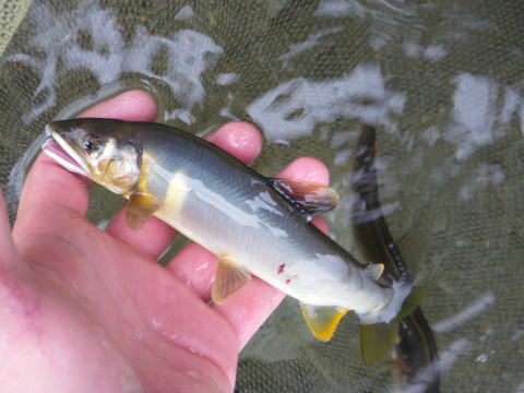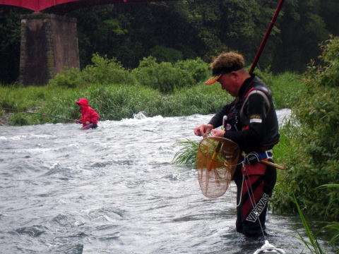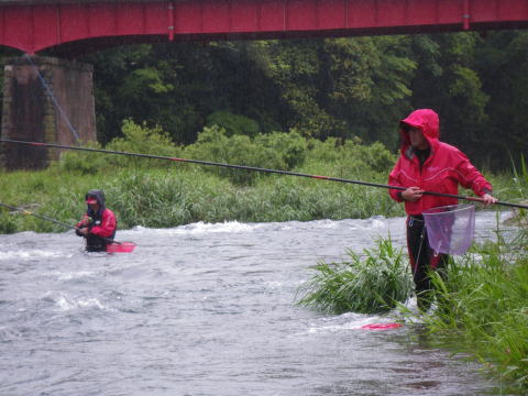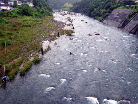 6月1日水曜日 この日がが水曜日になるのって滅多にないんですよね。 言わずと知れた鮎解禁日。 今年は宮川が早くに解禁してくれてたので 盛り上がりに欠ける2番煎じの解禁日となりそうでした・・・・ んな訳無いですよねε=(>ε<) プッー! 解禁直前に台風の影響で大内山川が増水 ![]() 盛り上がりに欠けてたのはスーパー渇水状態が原因でしたので この増水はありがたいのですが 解禁までに水量がどうなるか・・・・ ここで言う「どうなるか」は 「如何に美味しい増水具合を保ってくれるか」 って事でして 誰がそんな美味しさを求めてるかって言いますと 言わずと知れたこんな集団 ![]() 関西激流隊(*v.v)。 その現地特派員から刻々と送られてくる河川画像 ![]() 多数の特派員が送ってくれるので 画像サイズ・向きがバラバラですね(笑 そしてチェーンメールの如く回される画像。 1日に何度もだッ(* ̄Oノ ̄*) 解禁に向け盛り上がらざるを得ない生活環境が恨めしい(*´Д`)ハァハァ そして微妙な増水具合で迎えた解禁前日。 私以上に抑えきれない感情を持て余した 「関西激流隊広報一番隊長ハルさん」 朝から河川を巡回パトロール&前夜祭突入準備開始ヽ(`д´;)/ 一報を受けた私もヒートアップ(*´Д`)ハァハァ 閉店してベースキャンプに駆けつけると ![]() 河原に屋台が出来てました(笑 ![]() 屋台の主「関西激流隊総括隊長マーシー」様の スキンヘッドがトレードマークのマーシー隊長。 今年は髪も伸ばし染めてます。 知ってても近ずき難くなりました(爆 ![]() 諸先輩方と楽しい時間を過ごさせて頂きましたヽ(゜▽、゜)ノ 一夜明け ドンドンと車を叩く音で目が覚めた ![]() 対岸ではもう釣りが始まってたのですね(^。^;) 私はといえば、昨日飲んだバリウムのせいでお腹が・・・ そして昨日飲みすぎたナッシーくんと 川に入る前にスッキリしにいきついでに偵察です ![]() 阿曽駅前です。 deibuくんが入ってるらしかったのですが発見できず。 見てる間に掛けた場面は無し。 ベースキャンプに戻り囮を買ってないのに気が付いた(笑 すかさずナッシーくん 「こてっちゃん、コレ使ってええよ(#^.^#)」 って、昨日買って漬けてあった自分用の囮を私にくれ 自分はテクテク歩いて再度囮を買いに( ̄_ ̄ i) 今日は好条件戦隊ではなく関西激流隊としての出陣。 下っ端の私とした事が・・・・遠慮なくありがとう♪ モタモタしてる間に既に皆さん出撃してます ![]() いきなり川を切るマーシー隊長。 準備運動代わりでしょうか? 私も遅れての出陣 ![]() 雨が渋々と絶え間なく降って 水もかなり冷たい。 対岸に2箇所がポツポツと掛かってる感じ。 装備はPS早瀬にハイブリッドメタマックス01。 オモリはとりあえず1号。 全く反応無し(笑 どうもコッチ側は皆さん苦戦してる模様。 順調に囮も弱り始め順調に根掛かり_| ̄|○ 竿をあおっても取れないけど 根掛かり付近には ![]() この御方がニヤニヤしていらっしゃいましたが 取ってくれるはずもございませんので 自分で回収に。 近くまで行って場所確認するため竿を立てたら パシッ! 乾いた音が川面に響きわたりました。 今年第1回目の骨折です_| ̄|○ 2番がポッキリ・・・ 運好く1番は回収できたものの 仕掛けと囮は回収できず。 この時は骨折より 囮があと1匹になってしまった事の方がショックでした。 ベースキャンプに戻り いつも使ってる竿をソリッドから普通の穂先に変え 再度釣り開始です。 多少活性も上がってきたのでしょうか? ポツリポツリと掛かり始めましたp(^-^)q リズムに乗ってきたかと思ったら また根掛かり。 また竿折ってもアレですので 迷わず回収に向かいます。 埋没位置確認するため竿を立てたら パシッ! └(´д`;;)へ=зムギュ~~ 本日2度目の骨折です・・・・ 流石に何が起こったのか分かりませんでした・・・ 見るとまた2番。 ( ゜Д゜)ハッ 俺の先ッチョどこね(゜Д゜≡゜Д゜)? 今回は先ッチョも紛失ヽ(;´Д`)ノ、 もう釣りする気力も無くなり ベースキャンプでダラダラしてるところへ @おまけ隊員登場。 風のたよりで調子良く掛けてたらしいのですが そんな事今の私にはどうでも良いこと。 でもオトナですので一応釣果を聞いてあげました(笑 すると ボク、骨折しましたヽ(`д´;)/ 実に心地よい報告ではないですか(爆 しかも元竿やってるし( ̄_ ̄ i) @おまけくんの10万コースの骨折に対して 私は数万で収まるんだと思うと 何だか心が晴れ晴れと(^o^)/~~~ まだ午前10時。 残った竿、ソリッド仕様に004の仕掛けで 居合わせたナッシー君が釣り上げた鮎を横取りして 階段前で普通の友釣をする事に。 ![]() さっきまでが嘘の様にサイズアップして アチコチで竿が曲がり始めてます。 それでも対岸の「こてつの凹み」が 猛烈に掛けてましたけどね(笑 お昼ご飯も食べて 2時までって事で最後の勝負も やはり階段前で・・・ もう骨折したら後がありませんので 安全重視の普通の釣りです。 普通にしてたら掛かるんですね・・鮎って。 ![]() ナッシーくん、よしおくん、レンジャーたにさん、 