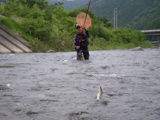 娑婆はどうだい?(-.-)y-。o0O 先週の心の傷がまた癒えてない罪人こてつです。 自首って選択肢ってないのでしょうか? さて今週は保健所の一斉監視のお手伝い。 従って午後のみの釣行となります。 プチ増水状態を維持したままの大内山川。 少しでもこの状況を楽しもうと目論んだ 関西激流隊マーシー総括隊長の召集が掛かったのですが・・・・・ 監視巡回の最中@おまけ隊員から かなり渋い状況との報告を受けた((o(-゛-;) コッチはコッチで巡回終わったらさっさと川に行きたいのに 長老達の世間話に合いの手入れつつ 時間ばかりが過ぎてしまって・・・ 結局1時におまけ君に電話すると 既に川から上がって家に居るとか(爆 じゃぁもう1回出動ねぇ~~~(* ̄Oノ ̄*) んで川を見てみると 水位も普通に釣れるまで下がりきり 私のテンションも下がりきり(笑 ![]() マーシー隊長御一行も場所を変わって ようやくマシな地にたどり着いたとか・・・ 何処でも同じかな・・・ ってな下げ下げテンションで 何でか空き空きの岩船橋下流へ入ることにしたのが午後2時過ぎ(笑 ![]() 1級ポイント(であろう場所)が空いてます。 誰も居ないかの様に見えますが 上に3人程居ました。 ![]() 鍛え抜かれた肉体にものを言わせ 既に半袖の@おまけくん。 元気一杯川を横切って行きます。 私はエッチラオッチラ準備して 入った場所から順次探って行きます。 ![]() 水量は良いんだけどなぁ~~~ 一番の問題は ハミ跡が見つけられない(((( ;°Д°)))) 何処かにシコッテしまったのか? 腕が悪いのか、忘れた頃にポツ・・・・ポツっと・・・ マーシー隊長も様子見にやって来てくれましたが 竿をさす事もなく、後からやってきた @クリア隊員&エリザベス夫妻と河原で談笑┐( ̄ヘ ̄)┌ エエとこ見て頂こうと 上の瀬まで行って引いてみたけどノーヒット(*´Д`)ハァハァ ![]() 何だかつまんないぞ((o(-゛-;) うなだれる私・・・・ ギャラリーも見飽きてしまったのか皆さん帰ってしまい 川には私と@おまけ君だけが居る。 貸し切りです(爆 @おまけ君も竿を仕舞って近づいてきました。 じゃぁ、今年のプライベートレッスンでも始めますか( ̄▽+ ̄*) 今年の@おまけ君的目標 「貴様はコイツを越えられるかッ(*`Д´)ノ"」 ![]() 日本一燃え上がるってるカメラマンです。 何となく@おまけ君と似てなくもない(笑 今まで一緒に釣行し 何百枚と私を撮り続けてきた@おまけ隊員。 ソレはソレで凄いのですが イマイチ使い物にならない写真が多すぎるのだ(-_-;) で、オフ中 徹底的にカメラワークの勉強をしてたはずの@おまけくん。 取り敢えず 上手い人の写真を真似る事から始めよう キタ━━━━(゜∀゜)━━━━!!!!!! レッスン① <友釣って楽しいんだぞって雰囲気をかもし出す写真> サンプルはコチラです ![]() 見覚えありますでしょ? 今年のSHIMANOの鮎用品のカタログです。 掛かり鮎を取り込むまでのワクワク感がたまらない写真です。 何故か@おまけ君に見本を見せる時には どんな渋い状況でも掛けてしまうのが私(笑 ![]() ホレ!おまけ!!掛かったぞ!!! ええポジションに構えぇ~~ヽ(゜▽、゜)ノ プレッシャーに押しつぶされそうなのか集中してるのか 無言でカメラを構える@おまけくん。 鮎を誘導してベストショットを狙います。 んで どうだヽ(`д´;)/ ![]() ![]() う~~~~ん、イマイチやったな(爆 でも今日一番面白かった瞬間です(*v.v)。 ![]() 入れ掛かる事もなく 動き回ってポツ・・・・・ポツ・・・って感じで終了~~(;´Д`) @おまけ君6匹。 私、6匹。 ドロー(爆 私はそうでもなかったですが @おまけくんの鮎には気になる症状が・・・・ しばらく雨なんですよね。 どうなるんでしょ。大内山川。 @おまけ君、中途半端なんで貰って下さいと鮎をくれた。 ![]() ジップロックで空気抜いて氷〆。 クーラーも臭いが付かずお掃除楽々♪ 家に着いたら丁度親戚の叔母ちゃんが遊びに来てて帰る場面。 袋のまま持ってってもらいました。 叔母ちゃんちの晩御飯になったとさ(笑 おっと、忘れてた。 私の代わりに@シガノン隊員が宮川調査に来てました。 初日は明け方の雨のせいで渋くスネテましたが 2日目はソコソコの釣果もあり楽しめたとか(^^♪ ■宮川@好条件CUP2011開催■ ~石の上にも3年寝太郎~ 日時:7月6日(水曜日)AM:6:00 大原囮販売店集合 参加費:2,000円(昼食・ドリンク・囮代込み、鑑札は各自ご用意ください) 参加資格:日本語を多少理解出来る方 応募方法:個人的に連絡頂くか、大原囮販売店に言うか掲示板に参加表明お願いします。 締め切り:6月30日位、人数を把握したいのでなるべく守ってください。 今年も細々とやらせて頂きます(^^ゞ 平日大手を振って友釣り出来る好条件な皆様。 こぞってご参加してくださいませ(^o^)/~~~ ちなみに 2009年・2010年はこんな感じでしたので お気軽にお越し下さいませ。 レベルは高いけどなε=(>ε<) プッー! |