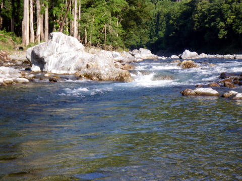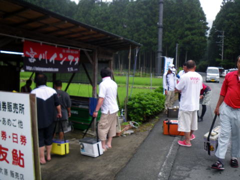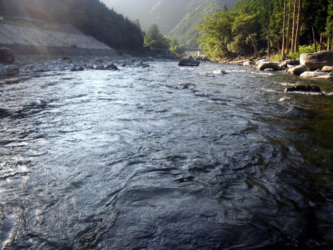 いよいよ来週に迫った ![]() もう御申し込みはお済みでしょうか? では本日は本番さながらに 事を運んでみることにしましょう(^^♪ 午前6時 ![]() 大原友鮎販売店(宮川インフォ)さんに集合。 (写真は昨年の好条件CUPに時のです) ルール等の説明のあと各自釣り場へと移動。 ちなみに今日は午後から野暮用がありますので 午前中だけの釣行となります・・・・ で、友缶は使わず引舟に買った囮を入れてもらって そのまま宮川インフォさんの下にある「こまた」に入ります。 午前7時過ぎ釣り開始。 意外にもココ「こまた」 私、初めての釣り場なんです(笑 ![]() そう、前回の反省点を踏まえ 自分の目で川を見てポイントを選ぶ事から始めました。 とか言っても色んな人からポイントの話は聞いてますので 予備知識的には少々あったんですけど(^^ゞ 大小様々な沈み石が無数にあり いかにも鮎の友釣りポイントって感じのチャラ瀬と 4カ所程の落ち込みのある「こまた」 ![]() 川を渡ってる時に気がついたことは チョット垢が付き過ぎなのかとても滑ります。 そしてハミ跡が見当たらない(-""-;) やや明るく感じる場所に 久しぶりにナイロン015を使って 下から立て竿で泳がせてみます。 フワフワした感じ? 複合のガシガシとした固い刺激に慣れきってましたので 何だか頼りないと物足りない気が。 それでも泳ぎは格段良い感じ。 まだ囮も元気ですから(爆 とか思ってたら ![]() ものの1分でナイスサイズゲットヽ(゜▽、゜)ノ こりゃぁ~そろそろ宮川スイッチONかぁ~(*´Д`)ハァハァ お天気も安定してきて 水温もかなり温かく感じます。 活性が上がってきて隠れてた鮎が出てきてもよい頃合。 ![]() ロケーションは最高です。こまた。 でもここから一発屋だったのか ここからな~~んも掛かりません( ゜∋゜) 私の上には2人の鮎師 ![]() ずっと下まで行って かなり竿を出し難い風情のガバガバで 居残りを狙ってみましたが ![]() こんなのが来てやる気メーター零└(´д`;;)へ=зムギュ~~ お茶を携帯してくるのを忘れてね。 あまりの暑さに汗だくだく出るし のどはカラカラで少し早いけど11時を待たず終了。(´д`lll) 宮川インフォさんとこに戻ると 地元民のさちおくんが今から出撃だとか。 次週の好条件CUPにも出て頂けますのでしばし談笑。 んで野暮用へ・・・・ (例の呼び出しです^^;詳しくはブログで書きます) ![]() 少し早く付いたんで 御漁場でやってみましたが爆風で話になりませんでしたとさ┐( ̄ヘ ̄)┌ さぁ~~次週は好条件CUPヽ(゜▽、゜)ノ 前夜祭に付きましては適当に8:00位から流れ集合って事で(笑 場所は毎年同じの居酒屋さん。 場所が分らない方は道の駅からご連絡ください。 当日は 午前6時大原友鮎販売店集合 これだけ守って頂けたら もう思い残す事はございません(爆 時間が来たら始めてますので 遅れちゃったら大原友鮎販売店で受付して始めてください。 じゃぁ、腕自慢の諸君! 引っ込み思案中の宮川の鮎を引っ張り出してくれたまえ(* ̄Oノ ̄*) |