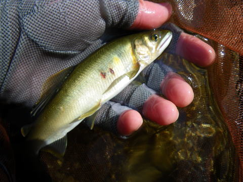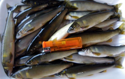 どうも、皆さんご無沙汰しております。元気? 今年も何とか生き延びてたこてつですヽ(゜▽、゜)ノ 例年より2週間早く開幕しました「鮎劇場」 最終までマッタリお付き合い下さいませ。 さて、既にご存知でしょうけど 宮川上流漁協の涙ぐましい努力のお陰で 解禁日を早くする事に成功したまでは良かったのですが・・・・ 5月初旬から出始めた冷水病。(´д`lll) その時点でこてつの脳内計算機は動き始めていたのであった。 例年、出てしまったら天候にもよるけど2週間は全くダメ。 そこからジワジワっと上向きになって 生き残りの鮎の活性が上がってくるんですよね。 こてつ計算機が弾き出した活性が上がる瞬間の日付けは 正に今日なんやわ(笑 全てにおいて自分の都合の良い思考しかできない男です(*v.v)。 さて宮川の女神様はどんなお迎えをしてくれるのかなぁ~~。 っと出撃前に「宮川インフォ」さんで 1年ぶりの再会を祝して長々と余裕のおしゃべり(笑 既に解禁から出撃してる仲間やお客様から 各ポイントの情報は収集済みなのだが やはりリアルタイムの情報は勝利への近道(*`Д´)ノ" 実は昨夜から本日のターゲットは 「小又」と心に決めていたのだが あろうことか前日に ![]() @めろん♪隊員が私の分をブッコ抜いちゃったのだ(-""-;) (写真はピンク隊員のブログ「鮎とアオリなオイラ」から引用) さて困った┐( ̄ヘ ̄)┌ 状況は何処でも掛かるが小ぶり。 場所ムラがきつく、同じ場所でも少しずれたら天国と地獄( ゜∋゜) 追ってやってくるピンク隊員にすぐ見つけてもらえる様に 道から丸見えの「荒瀬」で今年の竿出しをすることにしました。 ![]() はるか上流に1名居ただけの荒瀬。 すぐ同じ地元の会の人が来ましたが 空いてました。 もうココは得意中の得意の場所。 過去に何度もオイシイ思いをさせてもらってます(^ム^)ムフフ ピンク隊員が来るまでに囮確保と洒落込みます。 んで、ピンク隊員が対岸に姿を現した頃には 囮2号も発進して息も絶え絶えのこてつが居た(*´Д`)ハァハァ 何やっても掛からないんですわ。 囮を買わずにやってきたピンク隊員、 その足で引き返して囮買ってきてました(^^ゞ あ・・・囮のお代わり頼めば良かった_| ̄|○ どうもココは地獄に当たる場所と気がつくまで2時間かかりました(笑 大きく場所を移動して動かない囮で頑張ります。 ![]() 比較的良い色の場所を見つけたのが3時間後(爆 ようやく今年の初鮎と涙のご対面ですε=(>ε<) プッー! ![]() 囮が変わればプチ元気復活。 バタバタっとプチ入れ掛かり(*`Д´)ノ" ![]() コンディションの良い良型も キタ━━━━(゜∀゜)━━━━!!!!!! あ・・ちなみに掛かり鮎に変なのは居ませんでした。 しっかり追ってきます。小さいのも(爆 そう、場所ムラもあれですが サイズムラもかなりありました。私は。 どうにか今日の友釣りのメドが立った所で 場所を大きく移動です。 ![]() 昨日良型が出てた「地蔵」は満員。 皆さん情報が早いですね\(◎o◎)/ んで今年の「こてつ岩」でもと行ってみると ![]() 流石は名所(爆 既にどなたかが貼り付いていました。 でも空いてたのでココ「大熊」に入りました。 ![]() ピンク隊員は上流へと 私は下流へとランチまで竿を出しました。 楽しいランチタイムには 小さいのを数匹追加しただけの私に対し 何故か良型を立て続けに釣り上げた上機嫌のピンクが居た(爆 上機嫌のピンク隊員。 もちろん午後からもココで勝負だヽ(゜▽、゜)ノ ![]() 午後一のピンク隊員 私が準備も整わないうちに ![]() サクッと来たぞ(*`Д´)ノ" ![]() ほい!一丁あがり!お見事≧(´▽`)≦ そして私は ![]() さっきの人がのいたので 「こてつ岩」にご挨拶(* ̄Oノ ̄*) ![]() 今年の鎧はシックな大人のムードムンムンのこてつです。 奥に見えるのが「こてつ岩」ね。 ネチネチ舐ってると鮎が飛び出す「こてつ岩」周辺(笑 相性ってあるのかな? ここに来てピンク隊員の釣る鮎は型揃いなのに対して 私に掛かる鮎は小型が多目((o(-゛-;) 上機嫌のピンク隊員(ノ´▽`)ノ ⌒(呪) (明日の中スポ釣果情報に掲載されます) ![]() ライター下のが一番小さい鮎でした。 12~18センチチョイとバラバラの私に対して 何故か18~19センチ揃いのピンク隊員(-""-;) 何かムカつきますね(笑 どうなんでしょう?宮川。 こてつ計算機はどうも誤差があったみたいです(*v.v)。 生き延びた鮎達。 何処から何時湧き出て来るか楽しみです(ノ⌒▽⌒)ノ って事で、皆様 今年もよろしくお願いしますね☆-(^ε^) |