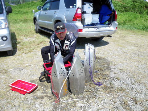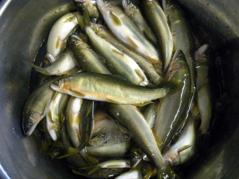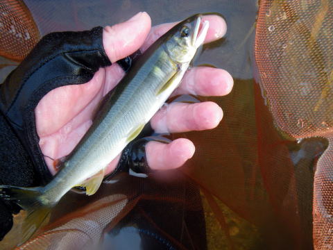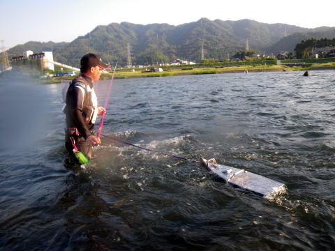 先週はピンクから長良川へのお誘いがあったにもかかわらず のっぴきならない用事で不参加ヽ(;´Д`)ノ、 え?釣りも行かないって何の用事かって(゜Д゜≡゜Д゜)? (誰も聞いてませんね^^;) それはね 見て(*v.v)。 ![]() ユージくんと春香クリスティーンちゃんがうちに来てくれて 何かのロケをしてってくれたんです(*´Д`)ハァハァ (その時の模様はブログに書きましたので興味のある方はどうぞ) 放送内容は ![]() 放送日まで友釣りにイケてるかどうか分からない状況ですので まだちょっと早いけど覚えておいて見てくださいね(*´∀`*) 話は戻りまして・・・・ 今年はどうも巡りが悪いのか どうも釣行回数が少ない気がします(゜_゜) そんな事で不満を言ってる状況でも無くなったのですけどね・・・ 年券買ってる川が全滅ですので どの道、日券を買うので未知の川お行ってみたいし・・・ とりあえず地元隊員にメールです。 業務連絡 今週、九頭竜行く人ヽ(゜▽、゜)ノ ちなみに送信先は言わずと知れたブラック&おまけくん(笑 「お供させて下さい(*`Д´)ノ"」 「連れてってください(^^♪」 間髪入れず返信が来たが そんな丁寧にお願いされても 九頭竜川の事など全く知らない私です(;・∀・) 頼みのピンクは今年九頭竜に興味が無いらしい。 っとなると密かにアチコチ突撃してるナッシー君に九頭竜情報希望のメールしてみた。 即、電話が掛かってきた(笑 「誰が行くのぉ~~」 「俺ら3人。おまけ君はデビュー戦や。ええ場所どこ?」 「ほんなら乗れるな、僕も行くわぁ~~≧(´▽`)≦」 (☆_☆) キラーン 頼もしいナビゲーター&囮取り要因確保ε=(>ε<) プッー! ってなわけで今回の慰安旅行は 私、ブラック・おまけ・ナッシー君の4名で出発進行(^o^)/~~~ 運転手はブラック&おまけ君コンビで 往路700キロを任せっきりだい! ウトウトしてたら現地到着(笑 さぁ!@おまけ隊員!! 輝かしい九頭竜デビューを飾りたまえヽ(`д´;)/ ![]() まずは諸先輩方の厳しい指導のもと 基本中の基本「囮の養生」から叩き込まれる@おまけ隊員! あ・・・いつも細々と動いてくれてありがとね(;・∀・) ![]() 出番を待ちずらりと並んだ激流舟。 そしていつもの様にモタモタと着替える私@コルセット着用。(´д`lll) 今一しっくり来ない腰なんです。 前回の熊野釣行では1場所しか持たなかった腰。 今日は底なしの体力を持つブラック&ナッシー君相手ですから暗くなるまでやるでしょう。 とりあえず1日竿を出し続ける力配分って事で。 ![]() 名前は知りませんが右岸側のこんなとこ。 結構な人出で入る場所も狭い感じです。 足元の石は曇った感じですが 前評判では25センチクラスが掛かるとかで 今年初のパワースペシャル登場です。 開始してしばし音沙汰なし・・・・ 左右には動けませんので 徐々に前へ出て行くと ビンッ! 手元に当たりが伝わってきました。 ぐっと貯めると呆気無く浮き上がる掛かり鮎。 これがPSの持つポテンシャルなのか!? 飛んできた九頭竜初鮎は ![]() ヒョロヒョロの鮎( ゜∋゜) 続いて掛かったのもこのサイズ・・・ 一気にテンション下げ下げ((o(-゛-;) ![]() 動くにももう入る隙間なく人が居ます。 私の下に入ってきた方がね なんか私の方をジロジロ見てきてね(・∀・;)・・・・・ いや、ジロジロ見るってより ほぼ私を目で犯してる?みたいな(笑 地元河川でしたら、「知り合いかなぁ~?」って思うけど ここは福井県九頭竜川。 激流隊の知り合いの知り合い?かな?とか 色々考えてたけど、その方 ものすごい顔が怖いの{{(>_<)}} なんかトラブルになってもアレだよなぁ~~ とか思ってたら上に行ったナッシー御一行もパッとせず 戻ってきたところで迷わず場所移動((((((ノ゜⊿゜)ノ逃げろぉ~ ![]() 移動先はブッシュを抜けた先がポイントらしいので 皆の舟にテキパキ囮を配分する@おまけ隊員。 男磨きの修行で息を抜く暇もありません(笑 ![]() こんな感じの広い場所。 ここは人が少なめでほっと一安心(*^-^*) それに比例して鮎も少なめ(爆 皆さんさかのぼって行きましたが 私は腰のペース配分を考え途中までで竿出し。 今一ここもパッとしなくって・・・・ 掛かった鮎は一回りサイズアップしてましたけど・・・・ 私の下の人が最初友釣りしてたんですけど なぜかガリ(ころがし)を始めまして 川中央で竿を振り回して大暴れΣ( ̄□ ̄;) ここは専用区じゃなかったのかな? いや、そもそもガリってまだ解禁して無いんじゃないの? 他所の川ですから ローカルルール的なものがあったりするのでしょう。 なんか危ないし、お腹すいたし釣れないから早々にやめて 皆が気付いて帰って来る様に 目立つ振る舞いをあえてする私(爆 ここでようやく@おまけ隊員 九頭竜川初鮎をゲット≧(´▽`)≦ ナッシー君がビンビン囮を確保してくれますから こういう機会に何も恐れずガンガンやれば良いと思います。 ランチ後やってきたのが ![]() こんな広大な瀞場。 びっしり石が入ってて ![]() ハミ跡だらけで全面ポイントか!? ここでプチトラブル。 ナッシー君のタモのうち1本が行方不明に。 