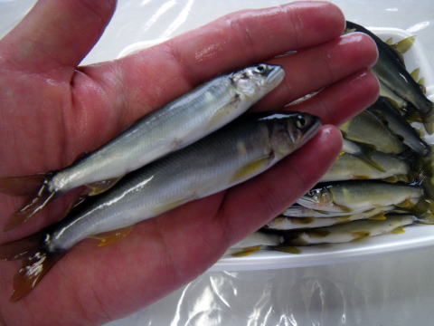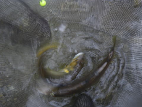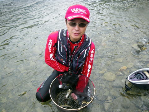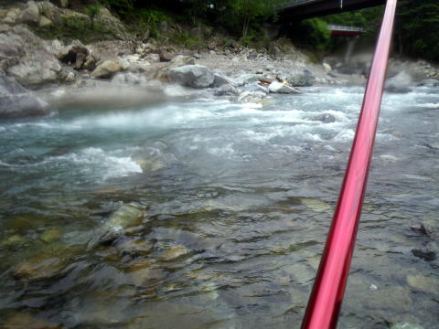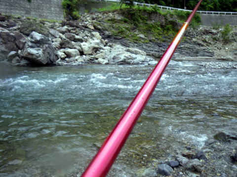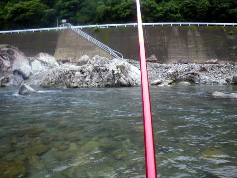 どうなってるんやw(◎o◎)w 普通の釣果ってどう表現したらいいのかな? 1日釣って10匹以上?20匹? 特別上手な人はともかく、初心者でも20匹オーバー! そんな快進撃が続いている宮川上流。 反面、いつ終わってしまうのかも不安なんですけど(笑 今週もそんな絶好調の宮川上流へ。 いつもの様に「大原友鮎販売所」で宮川インフォさんと雑談。 昨夜に降った雨のせいか気温もかなり低く 水温も低下してるのは誰でも想像できますね。 それでも何処でも釣れるのか?? 先週の場所は釣れて当たり前ですが 違う場所も釣ってみたいので今日は「かまのくち」へ ![]() ほら、階段があって楽だからヽ(^o^)丿 天国に一番近い場所とされる黒いパイプもあるしね(爆 石は沢山入ってる場所もあるのですが泥かぶり。 流石に「マズイかも(*_*;」って思いましたが今日はココなの。 事情がありまして「泳がせ釣り」の特訓をしたくってね。 丁度ココは練習にはもってこいの流れ。 ナイロン0.125でスタート。 最近複合メタルばっかり使ってましたので オバセを取った時の泳ぎの良さに感動。 「おお!流石はナイロン!メッチャ泳ぐやんΣ(゜∀゜ノ)ノキャー」 っと水中で ギラッ☆彡 >゜)))彡ギュイ~ン 泳ぐはずですわ。 ニゴイに追い掛け回されてただけでした(笑 抵抗むなしく仕掛け切れ_| ̄|○ 残す囮はあと1匹。 またニゴイにやられては元も子もないんで 少しだけ上流へ移動して釣り再開です。 ![]() ほんとに少しだけです。 ココは石の色も断然良いですが さっきより流れがあるんで複合004に張替え。 後が無いので丁寧に丁寧に泳がせること30分。 我ながらよく我慢しました。やっと囮が変わりました。 ココから入れ掛かりかな(ΦωΦ)フフフ… って思惑も外れしばし沈黙・・・ポツポツと・・・ 我慢に我慢の泳がせ釣り ( ゜皿゜)キーッ!! 次々掛かれば面白いんでしょうが 集中してる割に反応の無さに飽きてきて 体が勝手に動いてジャーー!って流れに移動(笑 これまた体が勝手に動いてオモリ装着(*^_^*) ![]() ジュド~~~んって良型が連発します♪ コレやってしまうと、もう泳がせは出来ません。 引いて引いて引きまくり。 当たりも遠のき上流へ ![]() チョットでも流れのある場所ばっかやってます。 泳がせの練習は何処へやら(笑 そこへ@おまけ隊員が登場。 ![]() 丁寧に泳がせてます(^_^;) 見習わないといけません。 もうね、何匹釣ったとかって事は二の次。 「どんだけ気持ちよかったか否か(*´o`*)」 ただソレだけが重要なんです。ココ数年。 だから釣果も全く伸びません。 @おまけ隊員が来てから 道の上から地元の「さちおくん」が 「こんなトコあかんで場所変われ( ゜Д゜)ドルァ!!」 って雄叫びを上げるまでの間に 私は坊主、おまけ君5匹。 謙虚に反省しないといけませんね^^; 場所移動前の記念撮影 ![]() ココでは21匹。 良いんだか悪いんだか分からないですね(;・∀・) しかしキツイ流れには良型が居るってのをインプット。 ![]() 何でこんな場面写してるのかな?(笑 今年釣りの腕は上がったみたいだけど カメラの腕前は昨年並に終わってしまうのか!? 大熊とかは人で一杯。 入れそうな「落滝橋」に移動です。 っとココで 「おまけ君、午後は勝負しよっか( ̄ー ̄)ニヤリ」 軽い気持ちで言ったらノリノリで受けて立つ@おまけ隊員! かなり自信も付いてきた「@おまけ的2012夏」 橋の直上の鏡みたいに水中丸見えのトロ場。 ココは私が修行に修行を重ねた思い出の場所。 (関連日記はコチラ) 鮎も多いし、今の@おまけ隊員には打って付けの場所。 とりあえず@おまけ君にその場所を薦めておいてっと 対して私は先行者が避けてそうなキツイ小場所。 入れて即掛ったと思ったら、@おまけ君も即掛かってた(笑 流れの割に思ったよりサイズがアレでしたので 対岸に渡って釣り下って行くことに。 そしたら橋の上からまた「さちおくん」が雄叫びを(笑 「もっと下へ行け( ゜Д゜)ドルァ!!」 見れば、魔導師タケちゃん夫妻の姿も。 この3人でどっか入ったらペンペンにやったります。 下に居た釣り人も上がってきたんで下へ。 チャラ瀬が広がってます。鮎も跳ねてますが細かい。 基本、お使いものにする鮎を取りに来てる釣行。 ある程度サイズも欲しい。 チャラ瀬で掛かるのはやはり細かめ。 んで ![]() ガバガバ~~~~(*^o^*) ![]() ドボドボ~~~~└(^〇^)┘ って所をオモリ付けて引いてました(笑 ![]() まだ釣り残しがあったのか 良型が入れ掛かる場面もあり大満足(^^♪ @おまけ君が竿を仕舞ったのを見て 私も竿を仕舞いました。 ベースキャンプに戻ると鮎を数える@おまけ君。16匹。 上手くなりました。 対する私の釣果 14匹(笑 完璧にやられてしまいました。 次回から@おまさんと呼びますね。 ![]() 「隊長!鮎なんかまた釣れば良いんで持ってって下さい(^_^)/~」 って事で写真は2人の釣果です。 吐き出すセリフもそれっぽくなってきました(爆 今回も勉強になりました。 ![]() 頭と尻尾付いてたら1匹 この2匹が2人の明暗を分けたんです。 今年はトーナメントに2試合エントリーの@お