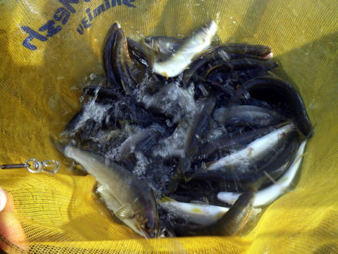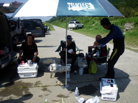 今年はもう納めちゃおうかな(´Д`)ハァ… そんな私こてつのつぶやきを聞いてか聞いてないのかw 今週は 「隊長!九頭竜へ遠征行きましょう(;゚∀゚)=3ムッハー」 って、脳天気な隊員の企画で なんとなく九頭竜川へ行く段取りとなった訳なんですが 当初、私とピンク隊員&おまけ隊員の 精鋭(笑)3名で突撃の予定だっったのが 途中参加表明したナッシー船長が道間違えて 球磨川に行ってしまったりw、代打で大物が参加するとか 何がどうなってるのか良くわからないんで 全て@おまけツーリストに段取りをまくって私は ![]() 前夜にはいつもの様に 後方支援部隊隊長@クリア隊員とエリザベスと共に 美味しい刺身に舌鼓(∀`*ゞ)テヘッ そしてその現場では ![]() 明日使うであろう武器弾薬の補充! 入れ物は可愛いが、その中には 鮎を仕留める武器がびっしりはいってんです(ΦωΦ)フフフ… 結局、ここからは 私・ブラック・おまけの3名で出発して 途中でピンク隊員と代打のマーシー隊長を拾って 5名での出陣と相成った次第でございます。 ( ゚д゚)ハッ! さらっと書いてしまいましたが 関西激流隊総括隊長マーシー様がいらっしゃるとなると 今日の出陣は「好条件戦隊こてレンジャー」ではなく ![]() での出陣( ー`дー´)キリッ しかも向かうは激流の聖地「九頭竜川」 マーシー隊長がいらっしゃっと言うことは やはりその目的は 2013年度の人事査定(-ω☆)キラリ 実は今年早々@おまけ隊員が 「関西激流隊サービス営業部長」 に異例の出世を遂げたのだw(◎o◎)w もちろんこの人事はマーシー隊長の一存ではなく その裏にはピンク隊員(関西激流隊幹部)の口利きがあったとか無かったとか(笑 では全く更新されない ピンク隊員のホームページ内に これまた全く更新されない「関西激流隊」のページがあるので 組織表を探し出して確認していただきたい。 ちなみに私こてつは 関西激流隊初代特攻隊長を就任してから 初仕事だけは張り切ってこなしたものの その後何ら活躍することもなく出世もなく(爆 そんな出世人事絡みのドロドロした釣行(爆 いつもの様に運転手は@おまけ隊員 助手席には私、後部ベンチシートに3名。 本来私が後部に座るべきなのですが 腰に大きな不安がありますのでスミマセンです。 途中、もう一人の関西激流隊幹部「プチ杉ちゃん」が 現地で合流するとか 釣りのBlogでお馴染みの「ヒデV」さんも現地合流とかで 何だか大所帯になって来ました(嬉! やってきたのはココ ![]() 大人数で入るならココなんだとか。どこ?ココw 到着するやいなや、川を目で犯しに掛かるマーシー隊長(゚A゚;)ゴクリ ![]() 川を目にした途端テキパキ準備に取り掛かる! 道中グダグダしてた方々とは思えませんがな(笑 ![]() そこへプチ杉ちゃんも、ヒデVさんも到着^^ 背中に踊る「鮎」と「激」の文字がカッコイイですね~ ![]() 先陣を斬るピンク隊員に続き 今日の御漁場に向けて分流を横切ります。 その勇ましい姿と裏腹に、その口からは 「冷たぁ~~~~いヘ(゚∀゚ヘ)アヒャ」 っと黄色い声が(笑 それもそのはず ![]() 水温17℃ 地元河川ではこの間まで水温30℃とかだった訳ですから その体感温度差は金玉が縮こまるって表現がピッタリw ![]() 最下流に私、そこから上流に向かって マーシー隊長・ヒデV・プチ杉ちゃん。 かなり離れた上流で、ピンク・ブラック・おまけ隊員の布陣。 こりぁぁ~~隊長にアピールするには絶好のポジション(・∀・)ニヤニヤ ![]() 水位は高目・・・とは言っても 今年の北陸方面は雨が多くて、常に増水気味ですので 今年的にはチョットだけ高目だとか とりあえずクリア隊員に用意してもらった 001に2号オモリでスタート。 しばし沈黙w 徐々に下ると ギュン! キタ━━━━(゚∀゚)━━━━!! しっかり溜めて慎重に返しにかかるこてつ。 宙に舞った掛かり鮎は中々の良型(・∀・)ニヤニヤ 上流に返した鮎を目で追う視界にマーシー隊長のお姿が ( ゚д゚)ハッ! ココはエエとこ魅せやなあかんやろぉ~俺(*´∀`*)ポワワ 脳内をそんな邪念が横切ったその瞬間 バランス崩してヨロけるこてつ。 しかも掛かり鮎が着水する寸前にだ(-""-;) 派手に水面に叩きつけられた掛かり鮎は 針から外れて何処かへさよなら(^.^)/~~~ 顔を上げたこてつが目にしたものは 満面(ほくそ)笑みのマーシー隊長(爆 楽しんで頂けたでしょうか(*ノω・*)テヘ 掛からん訳でも無さそうですので気を取り直し続行。 速攻根がかりで埋め込み_| ̄|○ 囮2号発進>゜))彡・・・ ゴソゴソ・・・ゴソゴソ・・・・ そんな振動が手に伝わってきました。 追ってるのか?熊野とかだとボウズハゼ掛かったみたいなアレ? 仕掛けが流れだした所で即竿立てて抜きに 囮浮いた!一気に返しに! 実は返す時にね 色々迷ったりするんです。大きいやろかとか 小さかったらぶっ飛んでくやろかとかモロモロ。 今日は迷わずブッコ抜くって決めてたのね。 宙に浮く囮! その下には 何もない?(・・? よく見ると さっき切った仕掛けが絡まって 囮もグルグル巻になってるみたいな(笑 いや、笑えない(笑 この間