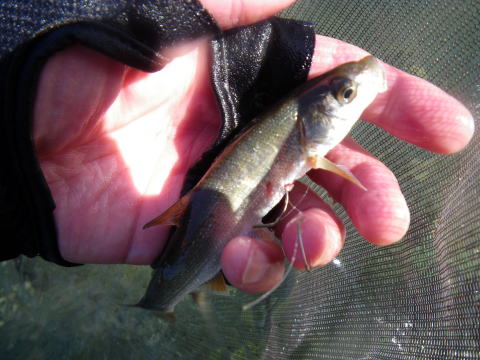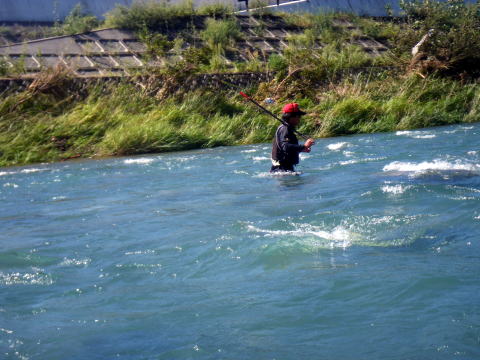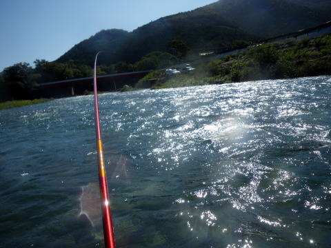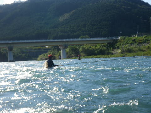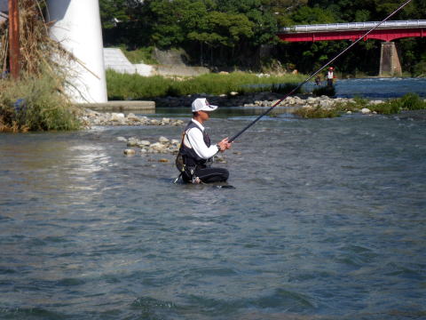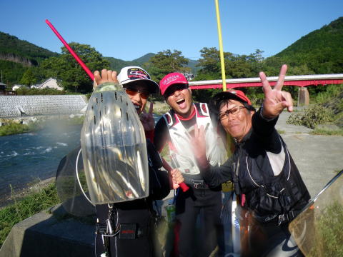 台風大丈夫でしたか? なんか京都とか大変な事になってたけど・・・ 私の地元は「大台町」 台風になるとその他の追随を許さない ブッチギリの雨量でその名を全国に轟かせますが 今回も京都の2倍の雨量でしたが災害もなくε-(´∀`*)ホッ そんな台風一過 モゾモゾと動き出す輩達が居た(笑 ![]() 「大内山川3メートル高(`・ω・´)ゞ」 携帯電話、便利ですね~ 刻々と現地特派員@クリア隊員から送られてくる増水画像。 そこへ 関西激流隊総括隊長マーシー隊長からも 「水曜日、水は最高!垢は知らんけどw」 みたいな挑発メール?斥候要請メール?が届き 半分あきらめモードだったんですけど ちょっと心が動いた(笑 いつもの様に火曜の夜から ![]() 車に満載の武器弾薬と夢を積み込んで家出(^^)v 目が覚めたら ![]() こんなとこに寝てました(爆 いやぁ~~毎週毎週車中泊だったんですけど 火曜に松阪のお師匠さんと会合をしてたので そのまま宿泊って事に そんな事情で今回の釣行は ![]() リッチにホテルから(* ̄Oノ ̄*) 川がどんな状況なのかは見ないとわからない。 良ければ追っかけ隊員も来るかも知れない。 っとそこへメールがw 「隊長!今日は海ですか?川ですか?」 こんな朝っぱらから@めろん♪隊員からメールだ。 移動中の旨連絡すると即電話掛かってきた(爆 なんと既に現場で待機中! 一人ぼっちで寂しかったのか 私の声を聞いてテンションが上がっていた気がしないでもないΨ(`∀´)Ψケケケ その間も続々と入ってくる 冷やかしо(ж>▽<)y ☆ そして ![]() 真っ白な川が私を迎えてくれた_| ̄|○ それでも ![]() 残り垢が無いかと 川を隅々まで物色する@めろん♪隊員。 こういう行動が、釣果に大きく差が出るんでしょうね。 @おまけ隊員は遅れて参加なので ![]() 今日は@めろん♪隊員が囮の養生当番(^^) 養殖を天然に変えて私にプレゼントしてくれるでしょう! ![]() 水温は16度、川は真っ白 この状況で鮎の友釣りって成立するんでしょうか? 実験開始! ![]() @めろん♪隊員が上流に入ったので 自動的に私は下流へ 意外にも入って即モゾモゾっと当たり ![]() なんか違う魚がヒットで坊主脱出ε=(>ε<) プッー! ではない(-""-;) 気を取り直し 一歩踏み込んで探ると ![]() 掛かったやんか(;゚∀゚)=3ハァハァ 考えたら前面サラ場ですやん! こりゃぁ、ひょっとしたらひょっとするぞ(∀`*ゞ)エヘヘ とか思ったんですが そのまま無反応地獄が続きます・・・ ![]() でも水量は申し分なく 気持ちいい釣り?立ち込み?が出来て なんだかウキウキしてました(*v.v)。 下ってノーヒット そして対岸に渡り ![]() 満タンの大内山川を満喫Σ(゚∀゚ノ)ノキャー そういえば 昔こんな名所も有りましたね ![]() 通称「こてつの凹み」(笑 増水時はココに避難して竿を出すのが精一杯だった私が ![]() 今日くらいの水量なら どこでも自由に動ける様になりました。 後は釣れないのが課題(爆 しかしマジで真っ白ですね^^; ![]() 囮屋さんが気を利かせて 1匹余分に入れてくれて手持ちの養殖は3匹。 まだ1匹しか使ってないので新品2匹。 そこへ遅れて登場のピンク隊員 「囮あるよ(^_^)/~」 ![]() のジェスチャーをしたのに @めろん♪隊員の方へ向かって行きました(-""-;)ムッ そりゃぁ私より@めろん♪隊員の方が 3倍釣りますけどね(;・∀・) 今日も午前中、私1匹、めろん隊員3倍w でも流石の@めろん♪隊員も ![]() こんなうなだれる場面があったりして ![]() 聞こえてくるくらい、反応が無かったです>゜))彡 ちょっと早目のランチタイム でも時間はたっぷり2時間w 2時間も河原で甲羅干ししてると 色んな人が寄ってきましたよ。 クリア隊員・鬼がわらジュンイチ・よっちゃん・・・・ 皆さん竿出せば良いのにって位居ました(爆 っとそこへ見慣れぬ1台の車が その側面には 三重テレビ放送 何やらロケが始まるみたいでした ![]() 私の(笑 ウソですw 何かの番組でかわい子ちゃんがチャリ漕いで橋渡るシーンの一コマに 鮎釣ってる風景が入ったら風情があるからとか ピンク隊員が助言して私が出陣って流れ ほら ![]() 橋の上に小さく写ってるでしょ?チャリw カメラもそっち向いてるし( ´゚д゚`)アチャー カットされなかったら 「とってもワクドキ」って番組らしいですので カットされてたら苦情の電話掛けまくたって下さい(笑 そんなハプニングもあったりして ようやく午後の部開始 ここから@おまけ隊員も参戦 「囮あるよ(^_^)/~」 って言ってるのに @おまけ隊員も@めろん♪隊員の引き舟に( ゚皿゚)キーッ!! 結局温存してた新品囮は自分で使うことに(;´д`)トホホ… 半日川に馴染ませた養殖は既に天然! 午後の部再開とともに ![]() エエのん連れてきてくれました(;゚∀゚)=3ハァハァ ![]() @おまけ隊員に指導してるのか @おまけ隊員が手本見せてるのか? 私はといえば 実質大内山川は今日が最後の出撃になりますし 友釣り自体、もしかしたらもう終わりかも? って気持ちがこみ上げてきてて 上へ下へ。右へ左へ。 とにかく動いて動いて ![]() どこもかも真っ白(笑 ![]() ピンク隊員と出会った 「こてつの曲がり」も久々