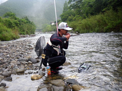 今年はすっかり出遅れた割に 5月頭からFacebookで皆様の釣果情報を見てたんで 随分長い間友釣りをしてる錯覚に陥ってるこてつです。 実際は今回で2回目(笑 お天気は豪雨&雷雨の大荒れの予報。 やれても昼までかな^^; とか思いながらの車中泊(つ∀-)オヤスミー そうそう! 今年ZERO号の後部に棚を付けてね (その壮絶な制作模様はコチラ) ![]() ![]() 益々快適な車中泊ライフと思って 一人ビールを呑んでてね さてと2本目をヨバれるとしましょうか(^^♪ っとクーラーボックスからビールを出そうとしたら 高さピッタリに作ってあるんでフタが開かない(笑 外に出たらすむ事なのですが 一度入ったら朝まで出ないのが 車中泊の美学( ・´ー・`)どやw 1本で寝ました_| ̄|○ もうちょっと夜を楽しみたかったこてつくん。 目が覚め歯磨きしながら外に出ると ![]() お隣にこんな素敵なステッカー貼った車が(笑 (ちなみに上の方ね) こ・・・これは! 車に貼ってこそ忠誠心の証(^!^) ![]() ![]() そう 「好条件戦隊こてレンジャー」ステッカー! ではないですか☆彡 そしてこの車の主が今回の同行者 ![]() @めろん♪隊員だぁ~ 好条件戦隊内で一番メジャーに近い男(爆 何釣らせても上手いらしいのですが そんな事私にとってはどうでも良い事 要は 「忠誠心」 コレ一番w ちなみに@めろん♪隊員 この春出演番組2本?3本?だったんですが ![]() 釣りビジョン「こちら東海です」 ![]() 三重テレビ「フィッシングポイント」 エスパプロのフィッシングポイントオフィシャルサイトはコチラ 両番組共に胸に輝く 好条件戦隊隊員識別標識 ![]() 好条件名札じゃぁないですかΣ(゚∀゚ノ)ノキャー @めろん♪隊員 今年も好条件戦隊を世に広める宣教師として 全国の河川を行脚しますw そうそう、好条件CUP 今年は ![]() 開催日時:2014年7月2日(水曜日) 場所:大内山川 参加費:2,000円(囮・弁当・飲み物込み) 鑑札は各自ご用意下さい 応募締め切り:6月25日 私もしくは最寄りも最寄りの隊員まで! 詳しくは追ってご連絡いたします。 例年通り、優勝~3位&大物賞はトロフィー 賞品もご用意致しますが 今年の目玉は参加者全員に ![]() 好条件ステッカー赤&黒をセットで♡ ヽ(;´Д`)ノヤメテー 塩ビ製ですので 車に貼るにはピッタリ♡ ヽ(;´Д`)ノヤメテー まぁ、そういうこっちゃ( ̄ー ̄)ニヤリ 相変わらず水曜日と平日となってますが 時間が合うようでしたら是非ご参加下さいねヽ(^o^)丿 そして来る6月22日(日曜日)は ![]() 第1回大内山川 名人杯 こちらは大内山川漁協主催のちゃんとした大会です! 永久に語り継がれる伝説「初代チャンピオン」の 栄冠をてにするのは誰だヽ(`Д´#)ノ ムキー!! 申し込んだ? あと1週間で締め切りだから急いでねぇ(^_^)/~ あれ?・・前置き長かった? もう慣れたやろwww 車に起こしに近づくと 既に社内でゴソゴソと動く影 出てきた@めろん♪隊員 既にタイツ履いてベスト着て完全戦闘態勢(爆 ![]() 流石は揺るがない独自の世界観の持ち主! あっぱれじゃ!! んで行き先は@めろん♪隊員おまかせ(*v.v)。 爆釣続きが止まらない宮川に行くかと思いきや @めろん♪隊員が選んだ先は大内山川。 宮川が得意な@めろん♪隊員にしては 意外な選択に?マークのこてつ。 どうも豪雨予報を気にした模様。 現場に着いてもう1つの理由にも気がついたんですけどね( ̄ー ̄)ニヤリ ![]() どんな時も「囮の養生」は 同行者の勤め (私、ガラスの腰なんでスミマセンね^^;) ![]() 水温計ったり川見たり 何か色々やってる@めろん♪隊員(笑 (笑)では無いですよね。 こういう事の積み重ねが釣果に出てくるんですよね。 折角ですのでしばし見学 ![]() ほぉ~~~(ΦωΦ)フフフ… ![]() そういう事やったんやね(* ̄Oノ ̄*) @めろん♪隊員が大内山川を選択した理由 それは 大物ブチ抜き用の NEWロッド試し釣り! なにせ今年の大内山川。 まだ6月なのに鮎のサイズが尋常ではない! 今ンとこ24センチが最大ですが アベレージ20~22センチが揃います。 このパワー系ロッドを この時期に試せるのはある意味奇跡☆彡 ![]() しばし見学&質問して私も釣りに。 この周辺ポイント。 連日爆釣続きで、昨日はあの@おまけ隊員が60匹オーバー! 流石に釣り荒れと雨で低水温で、追いもイマイチ。 それでもポツポツ掛かります(^^♪ 追っかけナッシー船長とブラックもやってきましたw ![]() ナッシー船長。 その釣り姿には隙が見当たりませんねw(◎o◎)w 数を伸ばして囮も余裕になり こんだけ隊員が揃えば何があっても囮に心配なし! そこで私が取った行動はアレ! 瀬田名人のやってる空中輸送>゜)))彡鮎ピュ~ン ワームとかで練習される方もいらっしゃいますが 私はあくまでもリアリティを追求しますので 生きた鮎でしかしません(断言! しかも誰も竿を刺せないであろう 生い茂った木の下難関ゾーンがターゲット 結果 ![]() ・・・・・・ お・・・囮なら余裕だぜ(^^ゞ 何故かこの日、鮎が掛かると仕掛けグチャグチャで それ直してる時間が長くて長くて(´Д`)ハァ… パーマになって切れたりして 仕掛けの残高に不安有りw その旨@クリア隊員に連絡(* ̄O