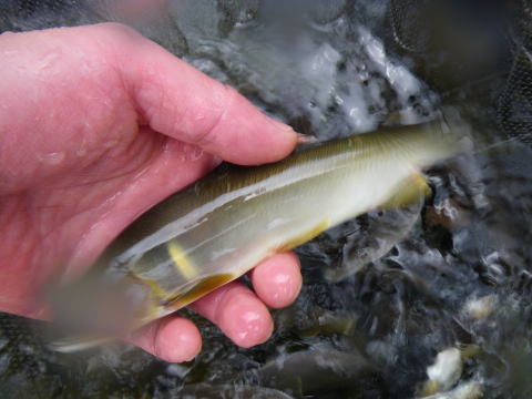 皆様ご無沙汰してますぅ~~~(* ̄Oノ ̄*) どう?元気にやってた? 私はね、もう元気で元気で(笑 冬の間は海に出てアオリイカなんか釣って遊んでてね ![]() どう? すっかり海の男の雰囲気出てきたやろ(*ノェノ)キャー ほんで釣果の方は ![]() ぼつぼつ人並みに釣れる様になってきてん(*ノω・*)テヘ ほんで、 イカ釣りでも新しいお友達とか出来てな ![]() 好条件マリンCUPなんかもやったりして 冬場も楽しく過ごしてたんですヽ(^o^)丿 よかったら一緒に行こうね~くコ:彡ブシュー 今更ココで書く事でもないけど 地元河川の「宮川」が5月17日に解禁だったけど ちと身内で不幸がありまして 四十九日が終わるまで自粛してた訳でして。 四十九日が6月1日ってのもあってね(^^ゞ すっかり出遅れた2014年こてつの武者修行ですが 今年も一夏お付き合いを(*v.v)。 さて、こてつの解禁は6月4日。 出遅れただけに インパクトのある出陣したいのぉ(・へ・) とか思っててね 隊員には秘密にして単独南紀凸入を目論んでたの。 そんな私の元に1通のメールがッ! (はい、今年もこのパターンが多そうですw) 「師匠ぉ~のんちゃんも4日釣り行って良い?(;゚∀゚)=3ムッハー」 何かね、この冬場もマメにコッチに来ては 釣りと飲み会を満喫してる シガノン隊員からだ(´д⊂)‥ハゥ コレで単独南紀凸撃は却下(笑 何故ならば、このシガノン隊員。 コッチに来る時は火曜の夜に前入り 水曜・木曜と釣りして帰っていきます。 その間、地元隊員で 三重の楽しい夜をコーディネート♡ そやな、一人こっそりエエ思いしようなんて せせこましい事企んだらあきませんよね┐(´д`)┌ヤレヤレ こうなったら 者ども!であえー!ヽ(`Д´#)ノ ムキー!! ![]() 好条件戦隊こてレンジャー@レッド隊長ご出陣じゃぁ(ノ`Д´)ノ彡 てな訳で ![]() 関西激流隊マーシー隊長 ピンク隊員・ナッシー船長・クリア隊員・エリザベス・シガノン隊員 で前夜祭決行ヽ(゚∀゚)ノ パッ☆ 逆流する程呑んでました(;゚;ж;゚;)ブッ 皆さんとうに解禁してますので 今回の行き先はまるっとお任せ♪ 記念すべき 2014年夏の陣一発目の攻撃目標は ![]() 大内山川@岩舟橋下流だぁヽ(`Д´#)ノ ムキー!! って、なんか普通ですねw っと言うより 宮川以外で解禁するって初めてなの(*v.v)。 状況は渇水で場所ムラが激しいらしい。 そんな事どうでもエエんです。 ようやく川で釣りが出来る喜びでいっぱいヽ(^o^)丿 ナイロン02でフワフワ泳がせてると ポツポツと掛かります。 そして凹んだキツイ筋に入れると ギラッ☆彡 ゴッチーン>゜)))彡 物凄い当たり! コレコレ!これやん(;゚∀゚)=3ハァハァ ほんでなにこれ ![]() まだ解禁したばっかりやで( ゚Д゚)ウヒョー 既に23センチ24センチが出たって聞いてたけど とにかく盛期のサイズが襲ってきます。 っと対岸に監視員さんがやってきて 鑑札のチェックと釣果情報やら話してます。 見れば今年から大内山川の組合長になられた 渡辺氏ではないですか。 組合長自ら巡回するのって初めて見たわw(◎o◎)w そして会話の最後に 「ありがとうございます。楽しんでって下さい(^^)」 って言われてました。 こういう事が普通に出来る人って尊敬します(`・ω・´)ゞ んで、私もご挨拶に。 「こてつくん!大会は出れないよね(・・?」 そう 来る6月22日 ![]() ★第1回 大内山川 名人杯 開催★ 大きな大会が毎年あった大内山川。 今年はソレが無くなってチト寂しくなったかと思いきや 大内山川漁協自ら主催でサクッと大会開催決定! 新組合長の元 新たな事をガンガン取り入れ躍進中やん!(^o^)! 初代チャンピオンの栄冠は誰の手に! 永遠に語り継がれる伝説の男に!! なるのが俺やったらなぁ~~(*゚ρ゚) ボー (*。◇。)ハッ! モニタの前のキミ! 是非チャレンジしてみてね(^^♪ 詳しくは 大内山川漁業協同組合HPでチェック! そして今日の釣れ釣れポイントとか教えてくれて 河原に捨ててあったゴミを拾って去って行かれました。 ええ川になりそうです。楽しみです。 さて、釣りのほうですが 朝方は昨夜の影響で元気のなかったピンク隊員が 突如入れ掛かりを演じ健在っぷりをアピール( ゚皿゚)キーッ!! ナッシー船長もシガノン隊員も それぞれデカ鮎げっとんо(ж>▽<)y ☆ 遅れて@おまけ隊員もやってきて なんだか大所帯に ![]() 小広瀬に移動して ここでもやぱりサイズがデッカイんだわ! ![]() アベレージがこれ ![]() クリア隊員も駆けつけて 場所移動したのが駒ケ瀬 ![]() 今年も囮の養生に精を出す@おまけ隊員 ![]() こんだけ車が並ぶと誰も入ってきませんね(笑 っとそこへ ![]() 大内山川漁協の巡回車登場 乗ってるのはなんとまぁ組合長。 本業が忙しい人なのに、時間作って廻ってるんでしょうね。 「坂津の所で初心者さんが20匹釣ってたよ」 「不動野橋で昨日60匹だよ」 って釣果情報を逐一教えて廻ってるんですよね。 ほんと良い川になるわ(^^) ![]() ココは盛夏になったら面白くなりそうな川相でした。 ![]() なんだかんだで 1日ワイワイと騒いで面白かったぁ~~(笑 (大内山川漁協HP釣果情報からパクりました。ワイやでw) 