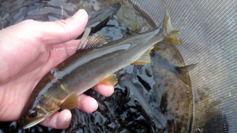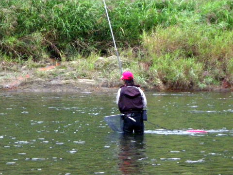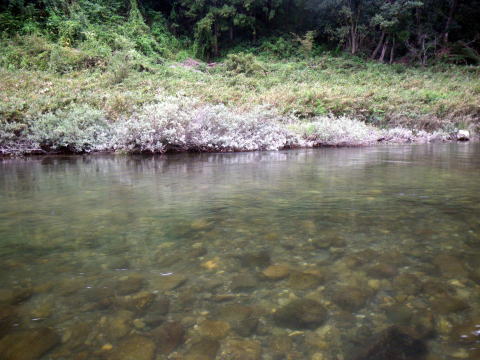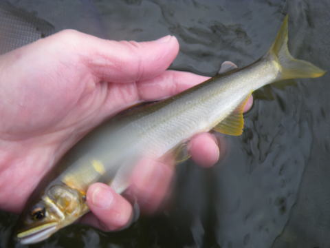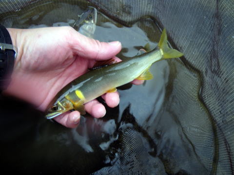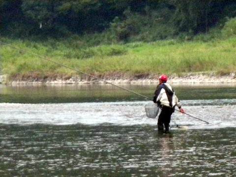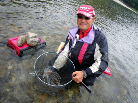 台風直撃で強制終了…(;´Д`)ウウッ… 先週はそのつもりで居たのですが 何だか小さくなってソレタ台風ε-(´∀`*)ホッ でも今週はお彼岸ですので お墓参りには行かねばなりません 新仏さんもいらっしゃいますのでなおさら 今週はお墓参りに行った都合で 午後から釣りに行けるかな?って感じだったんですが 嫁が前日に子供連れてお参りに行った模様(・"・) って事は私は単独でお参りに行けば良くなった訳で 単独って事は時間も自分次第やろ( ̄ー ̄)ニヤリ 朝5時にお墓参りに出発(`・ω・´)ゞ 早起きは3文の徳(笑 その足で三重県内水面漁業組合連合会へ もちろん囮の購入と ![]() 今年2枚目の日券も(爆 ほらぁ~~ 年券買った宮川上流1回 年券買った熊野川1回 年券買った九頭竜川2回やん? 今週は台風で終わってるはずだったんで 日券にしてたんです^^; でも先週買った券は386番 今週の券は445番 この時期にこれだけ日券が売れるって そんだけ宮川下流の人気ぶりが伺えますね もちろん年券の方も沢山いますし さて向かった先は ![]() こんな場所 車で10分で来れる近距離でありながら 今日で生涯3回目の宮川下流 ポイントが全く分からず見て回るつもりでして とりあえずココを見て回り 川の中にも入ってハミ跡チェック 結果 「う~~ん、他所見に行くかな(・へ・)」 鮎は跳ねてますが川が曇った感じで 一人ぼっちで囮をつなげる自信が持てない(^^ゞ 引き返す川原の道で 見覚えのある対向車が すれ違い様 『なんや!また来とるやん,、('∀`) '`,、、』 っと声を掛けてきたのは 先週も会った岡田名人と相棒ウルフくんのお二人さん 内心 「また来とるって、お前さんが言ったらあかんやろぉ~~www」 っと思いましたが 黙って挨拶出来るオ・ト・ナのこてつくん( ̄ー ̄)ニヤリ 岡田名人 お店に何度も来てくれてて 気さくに口も利いてもらってるんですが 釣りを一緒にしたことがない 今日は名人芸を間近で見られるチャンス☆彡 んで、私が見切った場所で釣ることに(^_^;) 何だか釣れる場所なんだって(;´∀`) もうこの時点で何かアレやん?俺(爆 ![]() いつもの様にゆっくり着替えをしながらも お二人の会話を聞き逃しません( ̄ー ̄)ニヤリ 「今日はこの色の偏光がエエな(*・ε・*)ムー」 「今年出たカツイチのこの針が抜群やで(-ω☆)キラリ」 (どこかに電話して) 「やっぱりこの間で釣ったらしいわ∑(ノ∀`)ペシッ」 「この時期の天然は何処に溜まるか分からんとこあるでな(-公-;)ムムッ」 そしてそれぞれ釣り場へ ![]() こんな小砂利底はイヤやな・・・ っと私が見切った瀬肩から岡田さん 何見てるんやろね、ワイ(TOT) ![]() トロ場を丁寧に泳がせるウルフくん ココも色がアレなんで嫌ったワイ(TOT) しばしお二人の釣りを拝見して 私もようやく釣りの準備開始 俺的ストーリーでは お昼に集合するやん? その時に 岡田「こてっちゃん、針は何使ってたん?」 とかトークが繰り広げられる展開必至なわけで そこですかさず ![]() 「岡田さん!コレです(`・ω・´)ゞ」 っと元気いっぱい応えられる 処世術だけは身につけてるこてつくん(*ノω・*)テヘ セナ持ってたら最高だったんだけどなぁ~~ 商売人の鉄則 「八方美人であれ!」 ちょっと覚えとくといいよ(笑 まぁワイの針なんぞ聞いてももらえんかったけどな(ΦωΦ)フフフ… んで私は朝の見学で ココは石が綺麗だなと思った ![]() こんな場所へ 見た目浅そうですが 腰以上まで立ち込んでます 思ったより流れがあって あと20センチ水位が高かったら北山川っぽい深トロ系 ![]() 上に飛ばしますと ギュルギュル☆彡 って水中で2匹の鮎が もつれ合ってギラギラって光るの丸見え(;゚∀゚)=3ムッハー 何か先週から 最近しなくなった釣りをしてて新鮮о(ж>▽<)y ☆ ![]() まだまだ若い香り高い綺麗な鮎♪ ただ、雨模様で気温も上がらず 釣り荒れ気味もあってか次々掛からず 掛かりどころも悪くポロポロと(^_^;) そうなると 循環の釣りが成り立たず囮も浮き気味に でもご安心 ポッケから取り出したるは ![]() ワンタッチで装着らくらく 永遠のベストセラー 『ごくらくV』 今年はゴム付き 『ストレッチ背針V』も新発売で お好みで使い分けるのもGOOD(^o^)丿 私はゴムなし生派(ΦωΦ)フフフ… ![]() 水の色に惑わされ 石の色を見抜けなかった・・・・ 釣りながらも岡田名人の釣りをガン見 そんなトコ釣れるん? 小砂利底やったんやけどなぁ~ 何か掛かってるわ~ 結果 ![]() デッカイのばっか27匹( ゚Д゚)ヒョエー まっ黄の追い星3重入れ掛かりで 大満足のニヤケ顔がムカつきます(爆 私は12匹(*ノェノ)キャー 午後からは場所移動されるそうですので お二人とお別れして 私はココに一人とどまります なぜならば 岡田名人のポイントを 私自身の手で釣ってみたい 立ち位置・竿の角度・取り込み じっくり観察さしてもらいましたんで 私がそこに立ったならどう動くのか 名人と何が違うのかやってみたかったんです 朝の下見では瀬肩の中央まで入って見て 小砂利~砂の埋まった瀬と思ったんですが 名人の立ってた反対側に行くと 大きな石がゴロ