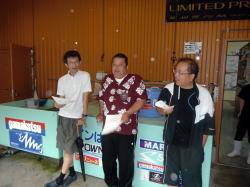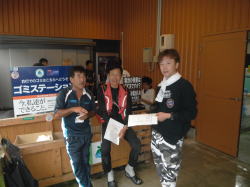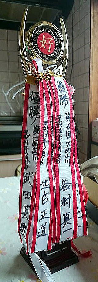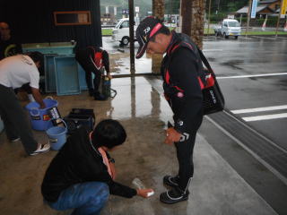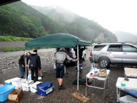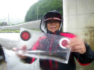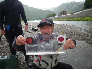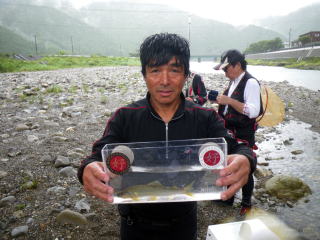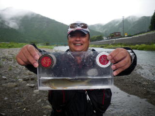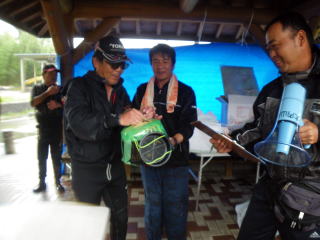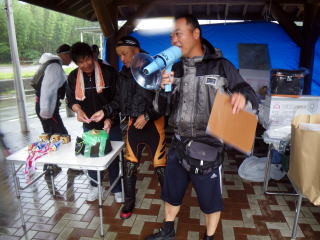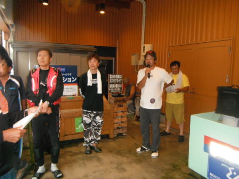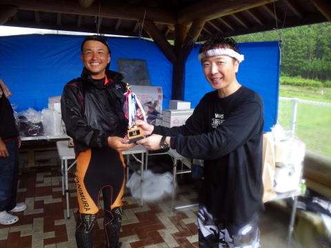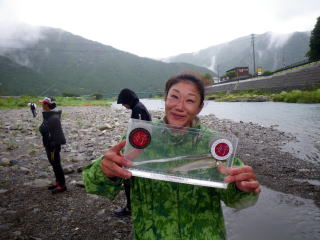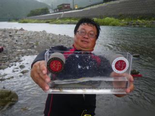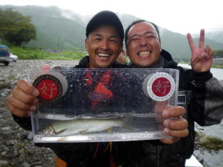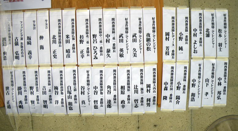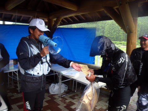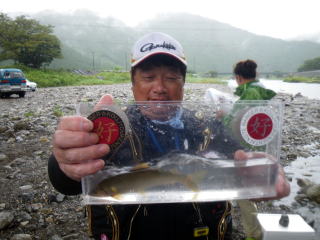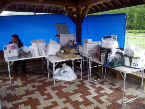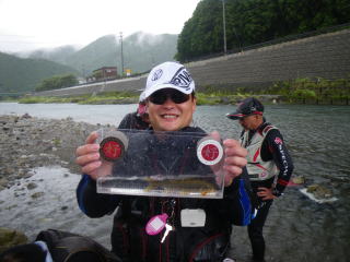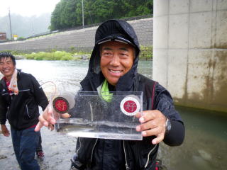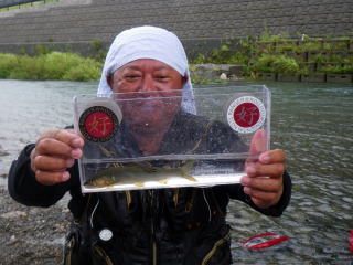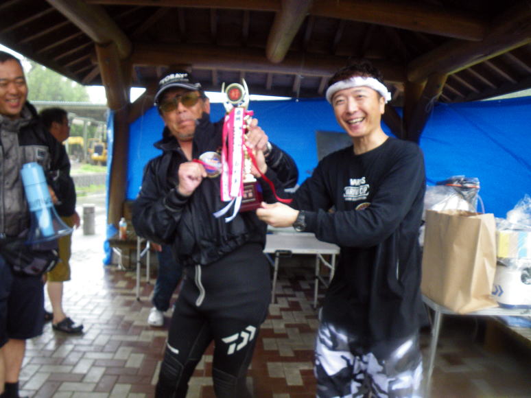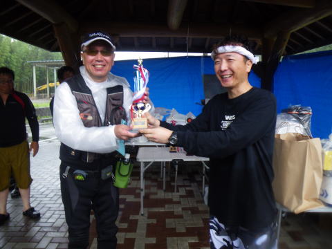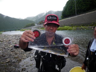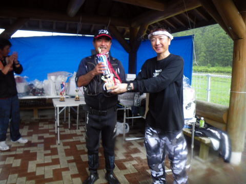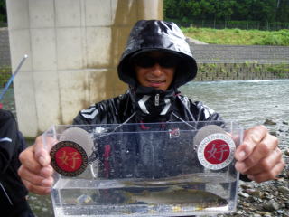 皆様こんにちわ(`・ω・´)ゞ 今週は我が「好条件戦隊こてレンジャー」各隊員の 男磨きの成果の発表会(笑 ![]() 2015夏♪好条件CUP☆彡大内山川大会(≧∇≦)/ 平日開催で、しかも3連休明けにもかかわらず 沢山の方に参加いただきありがとうございました(^^) 今回は ![]() ![]() ![]() ![]() 4名のニューフェイスの参加もあり 見識が無いだけに、どんな方なのかワクワクしますよね((o(´∀`)o)) ![]() ![]() 前夜の儀もとどこおりなく執り行われ ニューフェイス君が見事な働きで入隊試験合格したらしく 源氏名『パイルダーON』襲名してました(笑 その調子で好条件戦隊上部組織 関西激流隊入隊目指して精進する様に(*^^*) 窓を叩く音で目が覚めたのはAM5:30 何でか雨が降ってますがな(((( ;゚д゚))))アワワワワ ![]() 大内山インター降りてすぐの 「つりエサ市場」さんをお借りして開会式 ![]() 最終的な打ち合わせをしててふと気が付いた (;・∀・)ハッ? 司会者の@おまけ隊員がおらんやん(゚Д゚)ハァ? そういえば起こしてくれたのはナッシー船長 朝から@おまけ君の姿を見たものは居ない(笑 いや 笑ってる場合ではないのだw 道中事故にでも巻き込まれたか? それとも事故ったか(゚A゚;)ゴクリ 電話してみたら3コールで出た 「おはようございます!今起きました(`・ω・´)ゞ」 @おまけ隊員 絶対にやってはいけないタイミングで見事お寝坊さん(#゚Д゚)ゴルァ!! 時間も時間なんで代行で@クリア隊員の司会で開会式開始 ![]() つりエサ市場さんにマイクまで用意してもらっちゃって ![]() つりエサ市場社長&大内山川漁協組合長 渡邉氏のご挨拶も頂き ![]() 冷水病対策のお話もして頂き ![]() ナッシー審判長から競技規則の説明も終わり ![]() ![]() ![]() 皆さんボチボチと準備にとりかかり 囮をもらった人から順次釣り場へと ![]() もちろん囮配布時に大内山川漁協さんの協力で 全ての参加者の漁具等を冷水病対策で徹底的に消毒 と、そこへようやく ![]() @おまけ隊員登場で ワイからありがたいお説教を頂戴してました(笑 そして ![]() お説教のおかわり自由みたいでした(笑 ちなみにルールは 下流部はオトベ、上流部は行けるトコまでで お昼までに釣った数勝負&一撃必殺大物賞 それだけの覚えやすいルール 私達は集合場所で会場作りに ![]() そこそこ形が出来てきて ![]() ちょっと休憩~カンパ~イ(≧∇≦)/ 今日は関西激流統括隊長マーシー様に 現場監督をして頂いてました(゚A゚;)ゴクリ ![]() 今回も多方面から多大なお心遣い頂きありがとうございました(^^) ![]() また参加者の皆さんからも 今回参加できなかった方からも 友釣りはしないけど大変そうだからと協賛してくれたり 本当にありがとうございました(≧∇≦)/ 本来一品一品ご紹介させて頂くべきなのですが お名前の紹介だけでスミマセン(^^ゞ ここらへんから雨も本格的に降ってきて 風が爆風に(((( ;゚д゚))))アワワワワ ![]() テントが吹き飛んで役に立たん(-_-メ) それどころか 横殴りの雨で賞品は並べられないし お弁当食べてもらうのも困難な状況に(;一_一) 無い知恵しぼって ![]() 上の東屋にブルーシート貼って 表彰式だけこちらに移動してもらうことに 思わぬ悪天候に思わぬ事態になり 時間だけが刻々と過ぎていく・・・(:.;゚;Д;゚;.:)ハァハァ ![]() 何とか収めるだけは出来たε-(´∀`*)ホッ もうみんなずぶ濡れ 釣りの方も この爆風ではどうにもならず 早々に引き上げて来る選手も(^_^;) ゴミに巻かれた こんな日には活性の上がる鯉にやられた なんてこったい(-_-メ) それでも技術と根気と執念で 釣果を上げて来る選手もヽ(゚∀゚)ノ パッ☆ 検量時に大物用の採寸がてら記念撮影☆彡 帰着順に紹介です(^^) ![]() ひろみちゃん やっちゃん はまちゃん ![]() しょうたくん はっちゃん おまんゴー♂ ![]() お寝坊さんw ナッシー船長 事務総長クリア隊員 ![]() ブラック エリザベス 気まぐれ翁 ![]() シガノン隊員 坂やん パイルダーON隊員 ![]() まもちゃん ベトコン隊員 よしおくん ![]() ゆうきさん タッチさん にしでさん ![]() みやもっち シークレット&お寝坊さんw うめちゃん ![]() ピンク隊員 なべさん カラちゃん 写真撮れなかった方、スミマセン(^^ゞ 時間いっぱい頑張ってる選手も居て 勝負にかける心意気はお見事! ![]() 横殴りの雨に背中を向けての楽しいランチタイム(;´∀`) ![]() ![]() いつも美味しいお弁当ありがとうございます(^^) さくさく集計し場所移動で 表彰~閉会式へ ![]() お昼寝はしなかったのかなぁ~(・∀・)ニヤニヤ ![]() @おまけ隊員の司会(笑 全身ずぶ濡れで頭に巻いたタオル取るの忘れててスミマセン(^^ゞ 第3位 ![]() シークレット隊員☆彡 昨年は優勝で連覇は逃したものの 安定の上位入賞はさすがです! 準優勝 ![]() みやもっち☆彡 私の所属する地元の鮎の会「七鮎会」のメンバー どんな状況でも根気よく釣る姿勢は見習いたいもんです! 優勝の前に 一撃必殺大物賞 ![]() シガノン隊員ヮ(゚д゚)ォ! 「運も実力のうち」(本人談) 22.5センチのぶットい鮎でした(^^♪ そして 2015夏♪好条件CUP☆彡大内山川大会 栄えある優勝