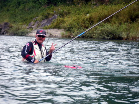 皆さん、毎日暑いですね(;・∀・) 先週は「好条件CUP」の仕切りで竿出せなかったんで 今週は実質2週間ぶりの釣行(;゚∀゚)=3ハァハァ しかも先々週は 三重県宮川下流にてスッキリ釣果(笑 もうね 宮川下流の鮎特有の強烈な引きが 夢にまで出てくる始末でして(;゚∀゚)=3ハァハァ ほんでもって先日の台風で しばし竿が出せなくなってた宮川下流 そろそろちゃうん? (;゚∀゚)=3ハァハァ って思ってみんな狙ってるんやろぉ~ ヽ(`Д´#)ノ ムキー!! そんな事ばっかり思いながら過ごした1週間(笑 5分で行けるから 行ってダメなら転戦って事で朝を迎えると 車の横で私の目覚めをジット待ってるはっちゃん(爆 ヤバイなぁ~(^_^;) 今日は一か八かの釣行になりそうなのに はっちゃんドツボにハメるかもしれんで(゚A゚;)ゴクリ 宮川上流と大内山川なら 安定の釣果は出るやろけど もしかしたら100匹Σ(゚∀゚ノ)ノキャー の夢に掛けたいんが男道! 事情をはっちゃんに説明した所 隊長にとことん着いて行きます(`・ω・´)ゞ っと流石は好条件戦隊レッド隊長私設親衛隊長! 命投げ出す覚悟は出来てる模様(^^)v で、現場直行 ![]() (´ε`;)ウーン… ちょっと早いかな(;・∀・) でもあの引きが忘れられないこてつくんw 迷わず内水面に囮を買いに直行! するとそこには ガマカツの福田さんの姿がッ\(◎o◎)/! 岡田さんの案内で宮川下流を楽しむらしいんですが ビックリしながらも 「この類の人達が来るって事はやね やっぱり爆釣のタイミングかもしれやんで(・∀・)ニヤニヤ」 とにかく自分に都合の良い解釈しかできない脳内w そこへ内水面のお兄様が 「こないだエライ抜いたみたいやん(^ム^)」 っと阿呆を調子に乗らす合いの手でwwww 「よし!はっちゃん!今日は二人で100はイケるでヽ(゚∀。)ノウェ」 っとチョウツガイが完全にぶっ壊れてしまいました^^; そして竿もパワー系のに持ち替え 颯爽と河原に降り立つワイ(`・ω・´)シャキーン ![]() 黙々と囮の養生に精を出すはっちゃん(^^) すでに先行者が3名居まして その中の一人がたまたま知人のふみおくんで声を掛けてくれたんで 「アカンかったら囮ヨロシクねぇ~(^^♪」 っと定番のご挨拶 「またまたぁ~誰が何言っとるんやぁ~`,、('∀`) '`,、」 っと河原でよくある社交辞令合戦(笑 垢がすっかり飛んでて真っ白なヘチ 昨日から河原が50センチは下がってるらしい ちなみにふみおくん、ココ得意ポイントで昨日も来てたんだって ![]() 深トロで竿をだすふみおくん 流石はポイントを熟知してます ![]() 下の瀬肩から竿を出すはっちゃん ホンマ鮎釣りが好きなんですよ♪ 周りがポツポツ掛ける中 思ったポイントに入れなかったものの どうにかなりそうなのにうんともすんとも言わないワイの竿(;・∀・) しかも24センチをボコボコにぶち抜くつもりの硬い竿が 何だか手になじまず違和感に苦しむ(-_-;) 養殖1号もヘタってきたんで 囮交換しようとしたトコで養殖2号逃亡・・・(;´Д`) オモリ打って1号機継続で 運良く掛かった鮎も速攻草に掛かって瀕死に・・・ ここで竿をいつものに交換(遅い!) 入りたかった場所に居た人が上流に行ったので 入ってみたものの無反応・・・(´Д`)ハァ…~ 有名な凄腕ブロガーさんだったんで 釣りきっての見切りだったんでしょうね 為す術無くなったその時 「こてっちゃん、囮あるんか(・・?」 っとふみおくんが声かけてくれてね(-ω☆)キラーン ほんなもん私の辞書にはね 恥とか遠慮なんてございませよ~~~wwww 私の上で掛けて取り込み中の鮎を タモですくって横取りやで(ΦωΦ)フフフ… 「もっとコッチや!ワイの囮が弱るやないかい(#゚Д゚)ゴルァ!!」 内心思ってたけど口から出たのは 「ふみおくん、ありがとう♡ これで後数時間遊ばせてもらえるわ(∀`*ゞ)エヘヘ」 人間ちゅうのは罪深い生き物なんやと思ったわw しかもピチピチ囮に速攻来たのは ![]() 坊主ハゼ?なにこれ? とことん悪循環でしたわヽ(`Д´#)ノ ムキー!! それでも何とか良型数匹楽しませて貰えましてε-(´∀`*)ホッ ![]() はっちゃんも苦戦しながらも なんとか釣ってたみたいで 数日早かったってのが正直な感想で そこへ急な減水で渋かったみたいで 自然って怖いなって思いました ランチ中にピンク隊員から ご機嫌伺いの着電があり状況を説明すると 「ナッシー船長、大内山川でハッスル中やで(≧∇≦)/」 との情報でサクサク転戦ヽ( ´ー)ノ フッ 一応同じ宮川流域河川なんですが ![]() 常に冷水病対策で除菌は心がけてます 車内のオヤジ臭対策にも良いので是非常備してね(^^♪ ![]() 私達が到着すると 釣りを中断してコッチに来てくれるナッシー船長 とことん面倒見が良いんです(^^) そして川を変わったら ![]() 他河川の鮎を持ち込まないのは定説 ナッシー船長の取れたて囮を拝借し(笑 しばし出し掛かりでスッキリ(゚∀゚)キタコレ!! 囮を借りたらノーカウントの国際ルールにのっとり 今日は人様の鮎で釣りを楽しませて頂きました(゚ε゚)キニシナイ!! ![]() はっちゃんはココで残業 とことん釣りが好きなんですよ! 私とナッシー船