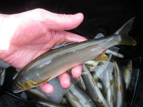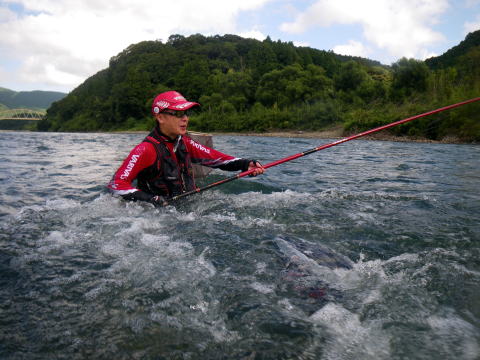 皆さま、こんにちわ 先週はキッチリ家族サービスをして お正月まで自由を確保したこてつですヾ(o´∀`o)ノワァーィ♪ てな訳で 今週は何処に行こうかなと(-ω-;)ウーン っと頭をひねってたのは 今週のツアーコンダクター役@おまけ隊員(笑 気が付けばもう8月も終わろうかってのに 今年はまだ遠征に一度も行ってないんですよ! 記念すべき2016第一回遠征に向けて 悩みに悩んだ@おまけ隊員からのメールがこれだッ 「数はいまいちだが大鮎の九頭竜? 川漁師さんのオカマ狙いで北山? 雨も大丈夫そうな長良中央? 未開の地、郡上? 台風も影響無かった様ですし、何処に?」 全く何も決まってないやん(爆 っとそこへdeibuくんから 中央に行くからナビ出来ますとの一報が♪ それを@おまけ隊員に伝え 最終結果を待つ私(・∀・)ニヤニヤ 今回は@おまけ隊員に任せた以上は 最後まで@おまけ隊員に委ねるのが私流 そして火曜日午後5:40 「明日の@おまけツアー! 4時30分に起こしに伺います! 添乗員はっちゃん、現地ガイド潜水橋さん 運転手@おまけとなりますのでよろしくお願いします♪」 現地ガイドが潜水橋さんと来たら 行先は熊野川水系! って事で急きょ仕掛け担当@クリア隊員に連絡し 明日の太仕掛けを用意してもらい しっぽり前夜祭(笑 (あれ?写真わすれたぞっとw) そして朝 ![]() やってきました熊野川(≧▽≦) ![]() あの災害以降何年もコーヒー牛乳状態だったのに なんでか濁ってないんだな!(^^)! この千載一遇のチャンスを逃す訳にはいきませんよね なんてったってここ熊野川水系は 激流道を歩むきかっけとなった忘れられない川ですから (激流道への第一話はコチラw) しかし高速が出来たお蔭で近くなったもんです 新宮まで70分と楽々です! 私は運転してませんけど(笑 そして熊野川の囮と言えば 浪花の囮屋さんですね♪ ![]() 「ボクが持つんだもん( `ー´)ノ」 っとなんでか囮缶を取り合いするお二人さん 普通嫌がらんか?(笑 これも私の隊員教育の賜物かなと(*'ω'*) ![]() ![]() ![]() 浪花おとりのおっちゃんもあの調子(笑)でお元気そうで おばちゃんも相変わらずお化粧バッチリでお綺麗で 昨年はお邪魔できませんでしたのでしっかりご挨拶ヽ(^o^)丿 ここで現地ガイド@潜水橋の主さんと合流 でもガイドには何も聞かずwww 向かった先はもちろん 「チャレンジの瀬」 キタ━━━━(゚∀゚)━━━━!! ![]() 川を見ながらワクワクするものの 実は不安も胸いっぱい・・・鮎おるんか(;゚д゚)ゴクリ… ![]() とりあえず@おまけ隊員が囮確保に トロ場を泳がせると不安をよそに 難なく1匹目ゲットε-(´∀`*)ホッ ![]() この日記の熱烈な読者@はっちゃんは 憧れの初「チャレンジの瀬」に直行ε≡≡ヘ( ´Д`)ノ 迷わず瀬肩から開始すると 早々にHIT! 満月の様に曲がる竿! 溜める溜める@はっちゃんでしたが あえなくドンぶり喰らってました ε=(>ε<) プッー! これやんこれやん(;゚∀゚)=3ハァハァ 今年朝っぱらから瀬肩で掛かるの初めて見たわ! しかもはっちゃん連発させてるしヽ(^o^)丿 何年振りかの熊野川 不安も吹っ切れテンションあげあげw が、身切れ・ロケット発射・親子ドン・・・・ 掛けても掛けても増えないのがこの川の面白いトコ(笑 案の定@はっちゃんもその道を着実に歩みだし ここらがワイの出番やろな( ̄ー ̄)ニヤリ 一発お手本を ![]() おりゃぁ!よー見とけよ(`・ω・´)シャキーン ![]() ほれ掛かった! おまけ!ベストショット頼むでε=(>ε<) プッー! 一歩も下がるな! コレが鮎との勝負じゃぁ!よー見とけ! 溜める溜める! 3 2 1 ロケット発射! びよ~~~ん(笑 ![]() 見た見た? 見事なロケット発射やったやろ! ワイは今とっても幸せやで(;゚∀゚)=3ハァハァ こういう釣りを好んでやってます (゚ε゚)キニシナイ!! 「今んとこマイナス3です(`・ω・´)ゞ」 っと快調な出だしの@はっちゃん それでエエんです(^ム^) せっかくココまで来たんだから 囮は皆さんにお任せして 普段やれない事を思いっきりやったらね そういう思いに応えようと頑張るのが 囮要員の@おまけ隊員&潜水橋の主の役目 (゚ε゚)キニシナイ!! 発電放水で水も増えてきたので サクサク次の場所へ 通称「ドン付きの瀬」 正式名称が長すぎで覚えられません(`・ω・´)ゞ が、行く道(河原)がごろっと変わってまして ![]() ![]() 分流が出来てて そこを走って中州?に上がるみたいな? これ以上水が増えて来たら 中州に取り残されそうな気がしましたので 各自状況判断して下さいませ(^^ゞ ![]() 道中も変わってましたが 川も変わっててね たぶんこの時間で水量MAXでのお出迎えと思いますが((笑) ![]() 上から下までズボーンと1本瀬で 止まる処が全くございません(ノ∀`)アチャー 前はヨレやら凹みがあって 陸からでも釣ってる人も居ましたが この状況では無理でしょうね 無理?無茶?を承知で 瀬の一番上から釣り下る事にして オモリを1個また1個と追加に追加 5個付けた所でとにかく囮が止まる所まで下って下って・・・ ギュイン! 一気に芯に走る走る! 油断して下竿になってたので 持ちこたえることすら出来ず親子丼1杯目(゚д