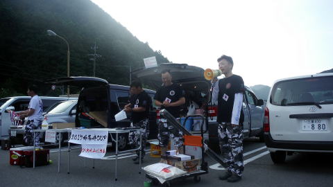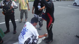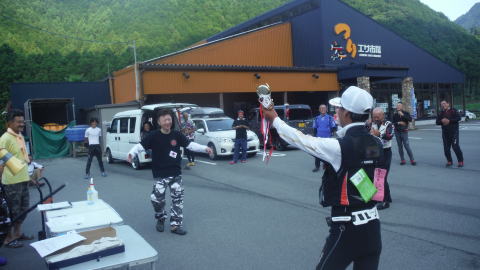皆さまこんにちわ~こてつです なんか梅雨も明けたみたいでいよいよ鮎本番ですね♪ さて今週は 我が好条件戦隊員がこの1年間私の下で 男を磨いてきた成果の発表会(笑 ![]() 2017年夏~好条件CUP大内山川大会開催 キタ━━━━(゚∀゚)━━━━!! さぁ~前夜祭から反省会まで 電池が切れない様に頑張るぞщ(゚д゚щ)カモーン 今年も平日開催の格式の高さを乗り越え 多数の皆様にご予約頂きありがとうございました(`・ω・´)ゞ 平日が故に必ずあるのがドタキャン 逆に前日に急に申し込んでくる輩(笑 ギリギリまで仕事の段取りしてたんでしょうねぇ~ 最後まであきらめない姿勢は見事ですが そこまでして来たいってのが嬉しいじゃぁないですか♡ こういった状況にも臨機応変に対応してくれるのが 好条件戦隊事務総長@クリア隊員だ(;^_^A アセアセ・・・ そしてモロモロの買い出しに駆け回る 好条件戦隊購買部長@おまけ隊員ε≡≡ヘ( ´Д`)ノ 仕事で動けない私の代わりに 大会会場をキープすべく前日昼間からベースキャンプを張り その模様を刻々と好条件メッセンジャーで報告する ![]() 好条件戦隊国防総長@はっちゃん(武闘派) 皆がそれぞれ男を磨く姿をこれみよがしに 直で私にアピール出来るのが好条件CUPの裏舞台 それは隊員にとって至福の時♡ え?私ですか? そんなもん仕事第一じゃァないですか(笑 汗かいたからお風呂入ってスッキリして それからゆっくり自宅を出発すると ![]() ちょうどエエ感じで 夜宴が盛り上がってる訳で ![]() いのししのスペアリブなんか焼いてもらっちゃってご満悦(笑 呑んで食って一夜明け ![]() 毎年お世話になります 集合場所は大内山インター下車すぐの「つりエサ市場」さん 海釣りの餌全般~ルアー~渓流エサ~囮鮎 そして釣り具全般 もちろん大内山川の鑑札も取り扱ってみえますので 是非ご利用くださいね(^^)/ ![]() 正装の戦闘服に身を包み 大会の監修をして頂いている「関西激流隊」マーシー隊長からの ダメ出しに気を引き締める隊員(;゚д゚)ゴクリ… ![]() ![]() 受付では恒例の名札配布(私がするのはコレだけw) 今回初参加者は9名(@ ̄□ ̄@;)!! 好条件諸法度第69条 2年連続で参加者が減るか、初参加者が居なくなったら 好条件CUPは幕引き 両条件をクリアしてしまいましたので 次年度も開催決定? 隊員諸君!喜んでる?(笑 ![]() 6時受付開始のはずが 6時には受付もすべて終わり前倒しで開会式へ(`・ω・´) ![]() 寝ぼけて挨拶もままならないワイ(*ノω・*)テヘ ![]() 対してビシッと決めてくれる 渡邊大内山川組合長のご挨拶('◇')ゞ 優勝杯の返還では ![]() 大好きなワイの胸に飛び込んで来る 前年度チャンプの@めろん♪隊員 ![]() 今年で9回目になる好条件CUPですが まだ連覇した者が居ないんです 今回の見どころはやはりココ 前年度早上がり&ブッチギリで勝った@めろん♪隊員が 今年どう戦って連覇なるか否か! ![]() ![]() 大内山川漁協さんのご協力も頂き 冷水病対策の一環として参加者全員の着衣・漁具を 囮配布時に全て消毒を徹底! 皆さん思い思いのポイントへGO! 11:00の検量開始までは自由に友釣りを楽しんでもらいます んで私たちは ![]() 大会本部の設営開始 ![]() 賞品の仕分けみたいな細々した仕事では 紅一点エリザベス隊員がテキパキと 男共に指図して作業もサクサク(≧▽≦) ![]() 今回も多方面の方々から お心遣い頂きありがとうございました(`・ω・´)ゞ 素人が勝手にやってる遊びですので 出す側に何もメリットがないので 協賛を集めて回るって事はずっと差し控えてるんです もろもろの繋がりで賛同いただけたり 今更引けなくなったり(笑 無言の圧力が掛かったり(汗 この時期になると気にかけて下さって嬉しい限りですm(_ _)m ![]() また参加頂く皆様からも 大会を盛り上げるべくこんなに沢山の 賞品の差し入れを頂きありがとうございました(∩´∀`)∩ 決して強制って訳じゃぁないですので もちろん手ぶらでのご参加で大丈夫なんですよ~ 何処かの大会でもらったけど使わないしとか お中元でもらった余りだけど良い物だしとか 捕まえたイノシシとか(爆 中には男気魅せて大奮発してくれる方も居たりで そういった御好意で成り立ってますので ご理解いただければ幸いです(*^^*) ![]() あらかた設営も終わり 心にも余裕が出てきた所で ![]() 気になってたコレ♡ ![]() サンテックさんのGENKI SPECIALのプロトロッド(;゚∀゚)=3ハァハァ 残念ながら賞品ではございませんがw 貸出用として今大会会場にて展示 やっぱ竿は囮付けて引っ張って掛けて 引き抜いてこそ良さが分かるってもんですよね つりエサ市場に常時置いてるそうですので お気軽に手にとってみて下さいね(^O^)/ ![]() あっという間に時間は過ぎ ![]() そろそろ検量開始時刻11:00 ナッシー競技委員長の指揮の下 段取りを再確認(`・ω・´)シャキーン 11:00~最終は12:00まで ちょっとバタバタしますんで(^_^;) 良かった人、思わぬトラブルに見舞われた人 帰ってくる表情で掛ける声にも気を使います(笑 ![]() ![]() ![]() ![]() ![]() ![]() ![]() ![]() 総匹数を勘定して 最長寸の