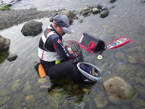 私の船を持ちサクサク釣り準備を進めるはっちゃん(*^^*)