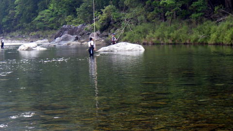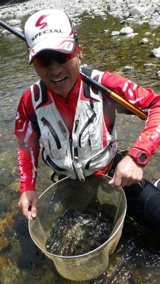 1年ぶりにこんにちわヽ(^。^)ノ ラーメン屋のおっさん@こてつです 今年は地元河川三重県宮川上流が5月11日に 大内山川が良く12日に解禁を迎えまして 皆さんの武勇伝を聞きながら地団駄踏んでましたわw そんな私の待ちに待った解禁日♡ ![]() ![]() もちろん前夜からはしゃいでの(笑 ![]() どっちにしようかなと迷った挙句 ![]() やってきたのは宮川上流(`・ω・´)ゞ 今年もお世話になります 毎度お馴染みの「宮川インフォ」さんで 新年のご挨拶ヾ(o´∀`o)ノワァーィ♪ 向かった先は ![]() ![]() 中瀬 5月27日にココ中瀬で 三重川鴉さんと四季楽鳥会さん主催の 「チャリティー鮎釣り大会」が開催されるんですよ 参加する気配ムンムンのはっちゃんの下見がてら 今日は無条件で中瀬にやってきた訳でして(ΦωΦ)フフフ… ![]() 今年も囮の養生から( `・∀・´)ノヨロシク ![]() 3人とも赤やん(笑 はっちゃん、だんくん。私の3人で 思い思いの場所.に散っていきます ![]() 下見に余念のないはっちゃん やっぱ第一回目にいつも思うのは 竿、長ッ(◎_◎;) 仕掛け細ッ(◎_◎;) 逆針の穴に糸通すのも一苦労ですわ(^^; ![]() 良さげなポイントでジッと我慢し ゴツゴツと当たった今年の初物は ![]() (-ω-;)ウーン そこから2連発のポロリ・・・ 2018年もこんな出だしなんですね... 人も増えて来て動けなくなり じっと我慢(◎_◎;) 使った事のない柔らかい穂先を付けてるせいか 囮の弱りも遅くここまで養殖1号機でなんとか凌いでました 周りが掛かり出したら2号機発進みたいな ![]() 下の棚の方がポツリポツリとコンスタントに掛けて見えます 上手い人の釣りはヒントが無いか盗み見します(笑 っとその方と目が合って 「どうやな?(*^^*)」 みたいな感じで声を掛けて頂きまして 今までの惨状を自慢する私(ΦωΦ)フフフ… すると 「あんた、一冨士さんやろ。日記も見てるし店も行ったりするんやで(^_-)-☆」 みたいな流れになりまして 聞けばガチ地元民の名人さんじゃぁないですか\(◎o◎)/! あ・・・私も地元民ですが、ちょっと解説をφ(..) ここ大台町は宮川村と大台町が合併した町でして 私は大台町民、この方は宮川村民 こと鮎においての地元民とは 旧宮川村の住民を指すというか 家の下で鮎釣りが出来る環境なんですよね 川とともに育ち、川で泳いで鮎しゃくって 川底の石の数まで知り尽くしてる地元民 逆に私世代の大台町民は川で泳ぐのは危ないと教育されてます 私自身、鮎釣り始めたのも30歳からですしね そんな地元の名人さん 「良かったら囮使ってな(^-^)」 っときたもんだ(^_-)-☆ 「ほんなもん良いに決まってますがなヾ(o´∀`o)ノワァーィ♪」 っとビンビン囮を頂きまして おまけに場所まで譲って頂き 今盗み見してた釣りに挑戦です(`・ω・´)ゞ 泳ぐ泳ぐ♡ 速攻でガガガみたいな当たり 抜くとポロリ(笑 気を取り直し再発進! 目印きゅるん♡ 今度はビリ鮎が口から目に針が抜けてて 瀕死で上がってまいりました(ーー゛) 気を取り直し再々発信! ビンビンと下品な当たりでエビ・・・ そこから何も反応なくただ過ぎていく時間 ![]() 囮をくれた名人さん ずっとコンスタント掛け続けてました(◎_◎;) 「どうやな?あかんか?」 「もうね、何をどうしたら良いのやら(^▽^;)」 「よし、ほんならもう1発、囮いこか!」 「もう1発と言わず、何発でもよろしくお願いいたします(`・ω・´)ゞ」 遠慮とか恥ずかしいとか全然ないんです、私(笑 この名人さん、引き船がいっぱいでカンコに移されるタイミングでね ![]() 10時過ぎたくらいだったかな~ もう50匹は釣ってたんちゃう? 聞けば地元(ここの地元はガチの方ね)の鮎の会 凄腕集団「夢釣会」の会長さんなんだって! 会員みなさんいつもこんな釣果で 解禁日にはもちろん100匹オーバー☆彡 こりゃぁ色々教えてもらわないといけませんね♪ ご親切にありがとうございました♡ ちなみに私も釣りの会の隊長(笑 ![]() まぁほとんどイベント屋みたいなもんなんですけどね(^^ゞ イベントと言えば今年の好条件CUPは 7月4日(水曜日)ですので よろしくお願いいたしますね~ 詳細はおいおいって事でヽ(^。^)ノ 流石に活性も上がってきたのか アチコチで竿が曲がり始め 私も囮の救済で何とか3匹ε-(´∀`*)ホッ 湿っぽいランチタイムの後(笑 ![]() 空いてる場所も無かったし こんな中州のチャッピチャピで開始 午前中の苦戦がウソの様にポンポン掛かりヾ(o´∀`o)ノワァーィ♪ 最近こういうチャラチャラも好きだったりします♪ ![]() お二人さんは根気よく群れ鮎を ![]() ![]() 竿頭はだんくんで40匹超え はっちゃんは午後から失速して不満げの20匹ほど 私はドーピング検査に引っかかりノーカウント(爆→参考20匹ほど) ![]() だんくんにも貰って 初物を家族で頂きましたლ(´ڡ`ლ) ちなみにはっちゃん ![]() 美味しそうな甘露煮に仕上げてました( ゚∀゚)o彡° 私らしい竿初めとなった2018夏の陣開幕戦( ̄ー ̄)ニヤリ ![]() 永遠の初心者なんですけど いっぺん面倒みてもらえやんかなぁ~(^^;) 今年もひと夏お付き合いのほど よろしくお願いします( `・∀・´)