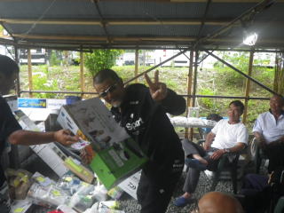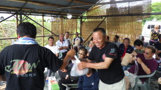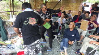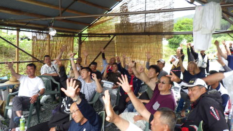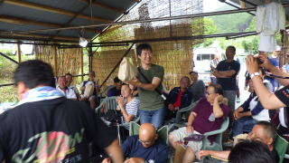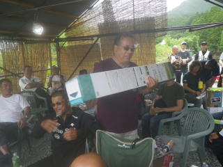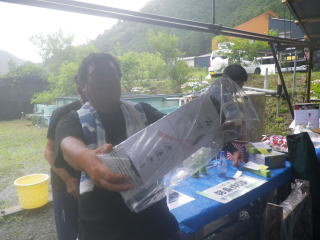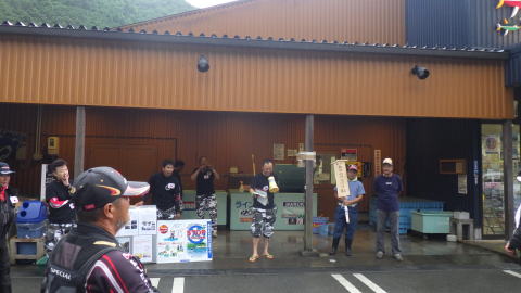 さ今週は 我が好条件戦隊員の1年間の修行の成果を見て頂く ![]() 2018年夏の陣!好条件CUP~大内山川大会ヽ(^o^)丿 第10回記念大会でもあり 平成最後の大会でもあり 何とか皆さんの記憶に残る楽しい1日にしたい! え~~~と 日記に入る前にですね、まずは ![]() 読み進めて頂ければ詳細は分かりますので・・・ 人によってはアホちゃうか!とか不快に思われるおちゃらけた表現等があるかと思いますが 大会後数日間しっかり反省し、その間未曽有の大災害が起こったりで一歩間違えたら・・・・ そんな思いにさいなまれていましたが ここの日記は日記で読み物として楽しんで頂けたらと切り替えて書きますので そこらへんの所、ご理解いただけるとありがたいかなと(^^;) では、始まり始まりぃ~~ヽ(゚∀゚)ノ パッ☆ ![]() 大会1週間前なんか台風も発生したけど 日本海側だし行ってしまうから大丈夫やろ(^-^) っと1週間天気予報を気にしながらも モロモロの準備を幹部(下働き?)隊員と共に進めててね ほんならなに? 普通速度を上げるはずの台風が停滞してしまい 大会日にはとっくに通過のはずが ![]() なんか上におるやん(-ω-;)ウーン 九州方面では災害レベルの降雨が続いてるニュース それでもね ![]() ここ大台町の降雨は時間1ミリ程度の予報でして 既に現地前日入りしてる隊員も ![]() 全く普通に釣り出来てて 川もご覧の通りむしろ最高の状況 ど・・・どうしたらエエんね(-_-;) 雨は降らんけど風は少々吹きそうやし そんでも日本海海上を通過してく台風やから遠いし 風速3メートルってどんなもんなんかいな(・・? 何といっても平日開催に向けて 皆さん休みを調整して頂いてる訳でして(-"-;A ...アセアセ 事務総長@クリア隊員とホットラインで協議の結果 ポスターにも書いてある鉄の掟 濁らない限り決行 に則り「決行」決定からの通達 そして現地に「大内山川観測隊」派遣 万全の態勢で迫りくる何かに備える事に(; ・`д・´) 観測隊長を任命されたのは@はっちゃん(`・ω・´)ゞ 一人寂しくベースキャンプを設営してたとか 店を終え大内山川観測隊ベースキャンプに向かうと ![]() 川原の暗闇に浮かび上がるコレは何(・・? 近づくと ![]() ブルーシートを張ったテントの中で大宴会(笑 はっちゃん一人ぼっちかと思ってたのにね あ・・・ 写真じゃァ音は聞こえないけど この時河原は暴風でシートが何度もチギレては直しの繰り返しΣ(゚∀゚ノ)ノキャー 時折ザッと降る雨に 濁ったらどうしよう(。ŏ﹏ŏ) っと呑むビールの味も分からないチキンっぷりの私(*ノω・*)テヘ そんな私の心中を知ってか知らずか テントの中では明日の天気の話なんぞ全く無く ただただ呑んで爆風に悲鳴を上げ大騒ぎヽ(゚∀。)ノウェ その間に3名の出場辞退の連絡が・・・ この場所で泊まると毎回同じ夢を見て目が冷めます 今回で4回同じ夢を見ててね 何かの啓示? 朝一川は濁りもなく普通で一安心したものの 相変わらずの爆風 みんな本当に来るんだろか(゚A゚;)ゴクリ 完全に判断ミスしちゃって申し訳ない まずは土下座でもして謝ろう_| ̄|○ ![]() 向かった集合場所「釣りエサ市場」さんの駐車場には すでに数名の方が来てて嬉し&ビックリ( ^ω^)おっ 次第に人も増え 6時から受付開始のはずが6時にはほぼ全員が集まり 10分に到着した最後の子が悪者みたいな雰囲気でした(笑 その間、悪天候での開催に苦情等を言う人は一人もいなくって あれ? 俺の判断は正しかったんとちゃうんかლ(´ڡ`ლ) っと勘違いするほど(爆;) ![]() ![]() ![]() 会場には和気あいあいとした雰囲気と 一部大会に向けて熱い火花を散らす面々も居たりしてね ![]() ![]() ![]() どうなん? 俺って間違ってなかったの??ん? そんな私の悶々とした思いとは関係なく刻々と時は過ぎ ![]() @おまけ隊員の開会宣言で 2018夏の陣開幕! ![]() 得体の知れぬプレッシャーで顔面蒼白の私の挨拶についで(笑 ![]() 大内山川漁協組会長・釣りエサ市場社長の渡辺さんにご挨拶いただき ![]() ナッシー審判長からの厳格なルール説明 ![]() 昨年度チャンプのピンク隊員からトロフィー返還 腰をいわしてるそうですがお決まりの 「ちょうどええハンデや!かかってこいや٩(๑`^´๑)۶」 っと挑発に出たピンク隊員 コレやるとろくなことないのにね( ´,_ゝ`)プッ ![]() ![]() ![]() そのまま囮配布で狙いの場所に行ってもらうのですが 大内山川漁協さんが積極的に取り組まれてる冷水病対策の一環で 選手の釣具・衣服をこれまた漁協さんの協力を得て消毒☆彡 我先に思い思いのポイントに散っていく選手の皆さんを見送り 私達は大会本部の設営に が ![]() 釣りエサ市場さんではほとんど気にならなかった風が 川原に来ると爆風じゃぁないですか(`ェ´)ピャー こりゃぁ川原での表彰等は無理やぞ! 場所を上の東屋に変更や( ゚д゚ )クワッ!! なにせ今年で10回目の好条件CUPです 過去にもいきなりの嵐に見舞われた経験があるんですよ(ΦωΦ)フフフ… ![]() 2015年の好条件CUPがそれでね 急遽東屋にブルーシートを貼って風雨を凌いだ経験値が物を言います( ̄ー ̄)ニ