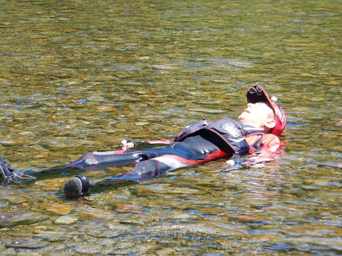 瀬に引っかかってないか潜って探すも見つからず(-ω-;)ウーン
