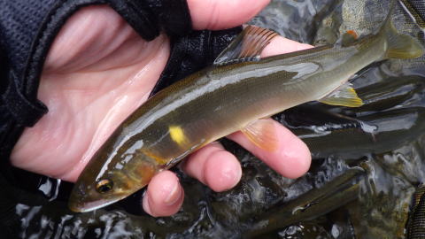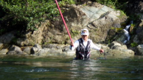 もやもや~~っとしたお天気と もやもや~っとした釣果続きの2019夏の陣(笑 入ってくる情報ももやっとしてますが 徐々に川も出来上がってきてる場面もあったりで 期待に胸を膨らませ今週も出撃です(`・ω・´)ゞ 老眼がきつくなってきてね 携帯メールを見る頻度が少なくなりまして 朝来てるメールをお昼に確認とかザラでw 先週も@めろん♪隊員からの朝一メールを 一緒にランチしてる時に見まして なんか探してくれてたみたいな(爆 で、今週は宮川に出陣って事で 電波状況も危ういですから 大原囮屋(宮川インフォ)さんとこに着いた時に 一応メールだけはチェックする事に 「隊長!今日はどちらの川に御出陣ですか(・・?」 やっぱり来てる(笑 @めろん♪隊員からだ! 仕事辞めたのかと思える程の同伴率100%❤ メールを返そうと思ったけど面倒なので電話を 「おはよう!俺はインフォさんとこに着いたぞ。今どこ?」 「おはようございます。私は今、隊長のお車の横に立っておりますm(__)m」. 早よ言わんかッw 穏やかな物腰の@めろん♪隊員 いついかなる場合もこんな感じです どうやら連休で、昨日は紀伊半島の河川探訪に出かけてて 最終宮川で釣って、そのままお泊りコースだったらしい 連チャンで宮川も飽きるかなと思ったけど もう来ちゃったから宮川でGO(=゚ω゚)ノ インフォさん推奨の「はまちば」ってとこへ ココは私も1度来たっきりで入川道とかがあやふや でも降りたら川があるんだから ケモノ道?ただの藪を突っ切って川に到着(^_^)v までは良かったんですが 昨日の雨で少し増水してて 記憶では膝で渡れる水深が結構深い(嬉! まずは私が突っ切るも滑ってこけてびしょ濡れに(≧∇≦)♬ なぜかウキウキする(爆 続いて深い場所を好まない@めろん♪隊員も ![]() そろ~~り ![]() そろ~~り とっても慎重に でも ![]() めっちゃ嬉しそう♪ キタ━━━━(゚∀゚)━━━━!! @めろん♪隊員も深い所が好きになってきてたんですね(^-^) 追っ付けピンク隊員も来るって連絡があったので それまでポイントをグルッとお散歩して待ってます 「どこから降りるんねぇ~(*'▽')」 っとピンク隊員が上から叫んでましたが どこから降りてくるか見てたら ![]() 同じ処から渡ってきてました(笑 この方は深い所が大好物ですからコレでいいんです(^-^) ![]() 肝心の釣りも 今までとは明らかに鮎からの反応が違う(・∀・)ニヤニヤ 流れの強い場所で掛かって ギュギュン!っと遡る当たりもアリで 今年初めて「友釣り」をしてる気が(;゚∀゚)=3ハァハァ ![]() 気長に丁寧にそして 同じ事でも何度も教えてくれる@おまけ隊員 ![]() ピンク隊員もプチすっきりでご機嫌(^-^) 私も@めろん♪隊員からの鼻バージン囮の寄進を断り 何とか自力で頑張れました あ・・・私の雄姿をピンク隊員に撮ってもらったはずが デジカメにはそんなもの取れて無かったです(^^; 釣り以外はアテにしてはいけない男ですねww ![]() 早目の勝利の宴を催し ![]() 誰も居ない大熊で午後の部です ![]() 囮の養生からぬかりない@めろん♪隊員 ![]() プンプン虫が大量発生してて 虫よけの効果もほとんどなく ![]() タモを被って凌ごうとしますが こんな状態では集中力ももたず 2時過ぎには誰からともなく早上がり(笑 ![]() コンデションの良い塩焼きサイズ ![]() 病気も治まりこれからが鮎本番ですね( *´艸`) ![]() 帰りにインフォさんに寄ったら 地元名人のさちおくんが居まして ![]() ![]() ![]() いろんなモノを見せてくれました(;゚∀゚)=3ハァハァ 日記が遅れたのは 朝一の川切りが祟ったのか ![]() 恋わずらいにて発熱してました(∀`*ゞ)テヘッ この釣行日から一度水が出たので 最新情報は宮川インフォさんでご確認を(^-^) |