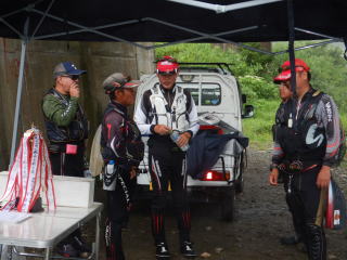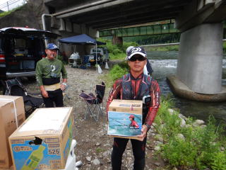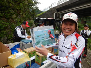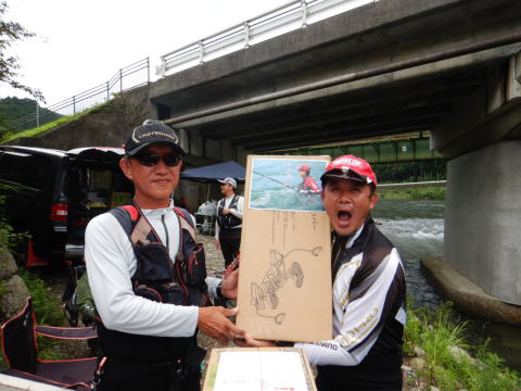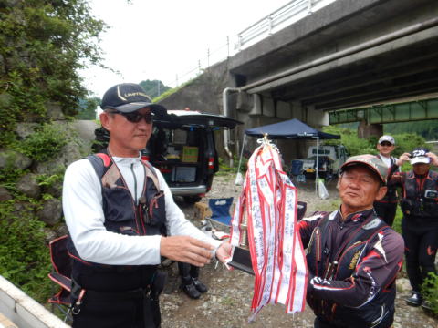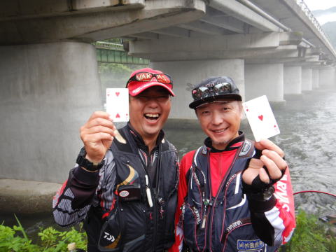 そろそろ梅雨も明けるのかな? 調理場は灼熱地獄、家庭は生き地獄のラーメン屋のおっさん@こてつです('◇')ゞ さて今週は地元の鮎の会「七鮎会」(しちねんかい)の 年に一度の大会です(`・ω・´)シャキーン 今年はどこもかも大会が中止となる中 地元民というより土着民しか居ない七鮎会ですので とりあえずやりましょうって流れで開催です☆彡 それでも今年で第33回大会と 歴史だけはダイワマスターズと並んでいたんですが マスターズは今年中止なのでウチが抜きました(* ̄▽ ̄)フフフッ♪ が、例年やってる夜の祝勝会(コンパさん付き♡)は 今年は無しって事で(^^ゞ 場所は余程の事が無い限り 大内山川@岩船橋上下の見える範囲 今年は数日雨が降ったおかげで ![]() 橋より下流域は増水でほぼ一本瀬 ![]() 橋より上流はいつもは鏡面ですが 程よく流れもアリの 要は橋より上と下で トロ場と瀬でパックリポイント構成が変わって来るんですねぇ~ ![]() ![]() ボチボチ集まり始めた土着民の皆さん お互い腹の探り合いに余念がございません(^ム^) ![]() 会長のムトウ君の挨拶 事務局のゆうきくんの説明の後 前年度チャンピオン ![]() @おまけ隊員から優勝トロフィーの返還 今年の見どころは@おまけ隊員連覇なるか!?なの?(笑 入川順位はトランプ引いて Aが1番で後は数字通り 前年度優勝者@おまけ隊員から引くと 何と💓2と好順位を引き当てたヮ(゚д゚)ォ! 順次引いてって私の番で ![]() サクッと♡Aを引き当てるワイ キタ━━━━(゚∀゚)━━━━!! よし!今日はワンツーフィニッシュは頂きや! もちろんワイが1でキミが2やじょ~(;゚∀゚)=3ムッハー さてここで迷いが出た(´ε`;)ウーン… 近況釣果から行けば橋より上の右岸が鉄板 でも今日は増水後の引水チャンスタイム ここで1番引いたワイが橋より上に行っていいのかな・・・ ワイの背中には 関西激流隊初代特攻隊長 の看板をかすかに背負ってるですよね これで橋より上でやったら勝っても負けても後々うるさいやろなぁ~(;^ω^) なんにせよこの時期の増水の後は やっぱり瀬を攻めてこそ男道( ゚д゚ )クワッ!! ![]() ![]() 総勢12名の戦いの火蓋が切って落とされたのが7時過ぎかな めいめい思い思いのポイントへと散っていきます ![]() あるものは橋を渡り対岸へ ![]() またあるものは川を切って対岸へ(笑 ちなみに私は橋より下の左岸瀬の開きからの瀬肩みたいなとこに陣取り その下手には@おまけ隊員が付かず離れず 間に入られるには狭く、二人で釣るには十分な間を取って ワンツーフィニッシュに向けて完璧な布陣をしく♪~(´ε` ) 私がまだ仕掛けもセットしていないうちに @おまけ隊員が1匹目をゲット! よし!瀬でも掛かる!正解や(。-`ω-) はやる気持ちを抑え鮎を放ちます 実は私、今日NEWロッドでの参戦でして 竿の調子が全く分からないので とっても慎重に囮を引き始めてました はい、パンパンの竿なんです(⌒▽⌒) もっと水量があった方が良い位のパンパンっぷり パワー的には何も問題ない代わりに 強引すぎると囮が弱ってしまいます 慎重に慎重に 程なく1匹目 感度は申し分無くパワーは持て余す感じ(笑 そして2匹目 ![]() ちょっと空いたのでチラシに代えての3匹目は 22センチのまっ黄っき 3本とも刺さってて傷がエライ事でした(◎_◎;) ここまで30分 まずまずのペースで優勝を意識するワイw が、イカリに戻してここで口掛かりがポロリと2連発(;一_一) 落ち着け落ち着け 時間はまだまだある 少し下って白泡をやろうと動いたら 後ろのヤブに仕掛け引っ掛けて なんだかジタバタし始めて 嫌な流れになってきたんちゃう? っと思ってたら 白泡で掛かって大暴れからのロケット発射_| ̄|○ 落ち着け!俺! まだ新品の養殖もあるんだから 再出発はいつでも出来)(*・ω・)(*-ω-)ウンウン♪ っとそこから根掛┐(´д`)┌ヤレヤレ っと外しに入って下を向くと 今年買ったばかりの偏光メガネが ぽちゃりと川に落ちたのが見えた瞬間消えて無くなるの巻ヽ(゚∀。)ノウェ お・・・終わった・・・俺の夏が・・・\(^o^)/オワタ 腰痛で上がってた子のとこに様子見に行こうと竿を畳むと これまた見事な固着を起こしてまして おっかしいなぁ~ 去年竿2本も奉納してあるのに 川の神様はまだなにか俺にお求めなんでしょうか(´Д`)ハァ… 竿抜いてゴム当てて石で叩いてもらって無事治りましたが ここまで込の6匹。時刻は10時。 あと1時間半ありますが瀬で連発がないから優勝はもう無理(^^ゞ いやこの状況で、精神的に普通でいれる人いる?(笑 ![]() で、橋の上の本命ポイントへ写真撮影に ![]() ここがいつも熱いんですよね ![]() ちょうど釣りやすい水量で やはり鮎は濃いかったです ![]() 気配を消してかっこいい~~(*^_^*) ![]() 静かに上飛ばしの術 ![]() 最後まで戦う姿勢を貫く ゆん坊(手前)と@おまけ隊員 ![]() ![]() ![]() ![]() ![]() ![]() ![]() ![]() ![]() ![]() ![]() ![]() 実力を出せた人、そうじゃなかった人 色々思惑はあったけど無事終われたらソレが一番! 私も場合は無事と言っていいのかどうか(^^; 第33回七鮎会大会栄えある優勝は ![]