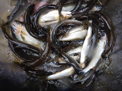 ここのHPも新しく?なった2021年 ついでに車も新しくなったラーメン屋のおっさん@こてつです(・∀・) 永らくお世話になったZERO号との涙の別れもそこそこに やってきたのは私にとっては二代目の四輪駆動車 やっぱ川原走るには四駆は必須ですもんね DIY系はというか工作系はというか ウォッシャー液すら自分で入れた事の無い私(/ω\) こういう四駆とかの性能を求めて車買うのはこれで最後かなと思ったら 何でかアチコチでポチポチしまくって カスタムパーツをお取り寄せщ(゚Д゚щ)カモーン までは良かったんですが 次々届くパーツ達がどれをどこに付けるのかこんがらかって((笑 そこに登場したのは ![]() おまけ隊員&ユン坊隊員のDIY好き好きコンビヮ(゚д゚)ォ! ![]() パーツ取り付けたり何か作ってくれたり 一番こだわったのが 隊長が熟睡できる車中泊環境 ![]() いまいち快適さが伝わりませんね(爆 ほら見て、夜になるとね ![]() とってもムーディー💓 もう朝まで爆睡出来てるんですが おまけ隊員、納得いかないらしく これからも手直しして行くそうでしてヾ(*´∀`*)ノ そんな快適な眠りから目覚めて外を見ると 隣に車止めて、良い子で待ってるピンク隊員発見 今日は二人でマッタリ釣行なれど 私にとっては2021年竿初め!(って事でw) 場所選びも、困った時の囮おかわりも頼りになるピンク隊員! ![]() 連れてってもらったのは 大内山川@不動野(ふどの) 大内山川のポイントや囮屋さんは 大内山川漁協HPに大内山川釣りマップがありますのでご参考に シトシトと、時折激しく降る雨 でももう3名の方が竿を出してました この場所の常連さんらしいので その近くが好ポイントなのでしょうが 人を気にして釣るのが嫌だし、近いとトラブルとかもあるだろうし 何といっても橋の近くは上から呼ばれるから((笑 そんな感じでポイント見がてら下流域へ ![]() 橋より上に人が集まってて 下流には私一人って状況 釣れても釣れなくても気分は上々( ̄▽ ̄) ダメならピンク隊員に囮貰えばいいだけだし~ (。´・ω・)ん? ソコに見えてるのはもしかしてだけどッ(-ω☆)キラリ 上に木が覆いかぶさっててやりにくいジャラジャラ 竿を寝かせてソコに囮を引き上げると ギュン☆彡 キタ━━━━(゚∀゚)━━━━!! でも竿立てたら覆いかぶさった木に引っ掛かりますので 竿寝かせたまま後ろに下がってから下流へ誘導 我ながら落ち着いて出来てました まだ初期の鮎ですから余裕がありますねw こうなったら鮎を散らさない様にソコをピンポイントで攻めるだけ 下から下から順番に抜いていくイメージで 出来る出来ないはともかく そういうイメージです((笑) 参ったなぁ~新年早々いきなり 鬼掛け装置作動! かよぉ~(・∀・)ニヤニヤ まぁ何度か上の木に引っ掛けちゃったけどね(ΦωΦ)フフフ… 今年も仕掛けはクリア隊員が全面バックアップップ♪ 初っ端から一杯お仕事作ってしまいました(^^; 超早目のランチ?遅がけのモーニング?に ピンク隊員が呼びに来た時には ![]() もういつ帰っても大満足です、私。 余裕のニッコリ(*^-^*) ![]() ![]() お互いの車の後扉を跳ね上げて雨よけに ピンク隊員が焼いてくれたお肉に舌鼓(゚д゚)ウマー ![]() 後半戦も誰も居ない下流部へ 激しくなる雨に集中力も途切れ 上の木に引っ掛ける回数も増え それが集中力をますます途切れさせる・・・ハードボイルド調語り口 でも掛かるけど(^ム^)ウヒヒ でもこのまま雑にやってたら竿折ったり そういうトラブルになっちゃうんだよなぁ~ って思ってたら ピンク隊員も帰ろうかってなって 2時にて終了~~早い?w ![]() ジャバジャバ~~って 船から出すのって快感💓 ![]() 大満足の竿初めの儀を執り行わせてもらえました あくまでも今日が竿初めです(゚ε゚)キニシナイ!! ![]() いうまでもなくピンク隊員も ジャバジャバ~~ですヾ(*´∀`*)ノ 能書きこくガラじゃないですけど 上流部がオススメみたいですね 水出たら天然も動き出して 下流域も元気してくる感じです(`・ω・´)ゞ よぉ~~し 今年も頑張っていきますので よろしくお願いしますね(^^)v |