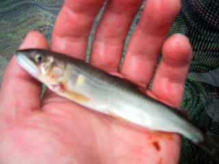 2時間程の休息の後、戻って再開です。 そしたら掛かるは掛かるは入れ掛かり! ←みたいな小さい鮎が(><;)!! 最初は銀紙が引っかかったと思いました。 ゴミ取ろうとよせたら鮎だったんです。 釣っては放流、釣っては放流 たまにキープサイズが掛かります。 もう何匹掛けたか分からなくなっちゃいました 稚鮎だけど・・・・ |